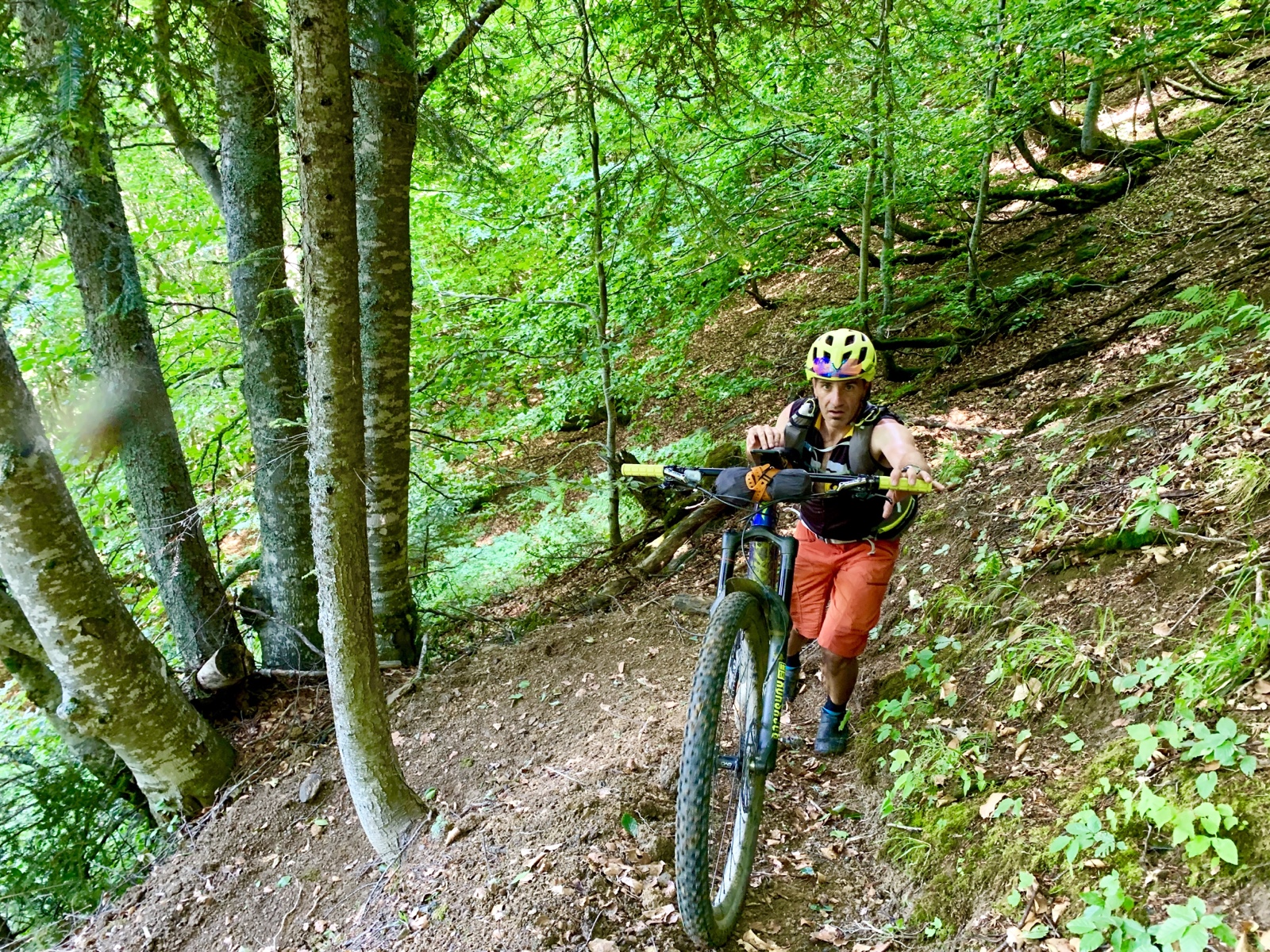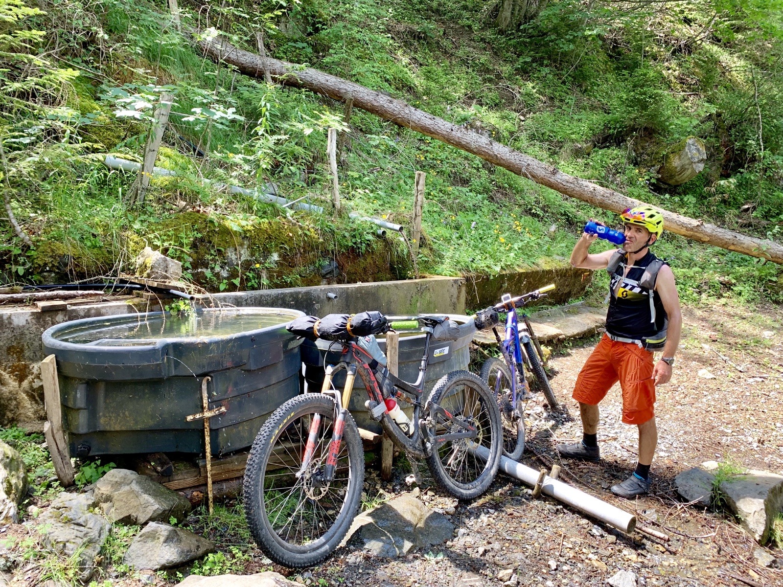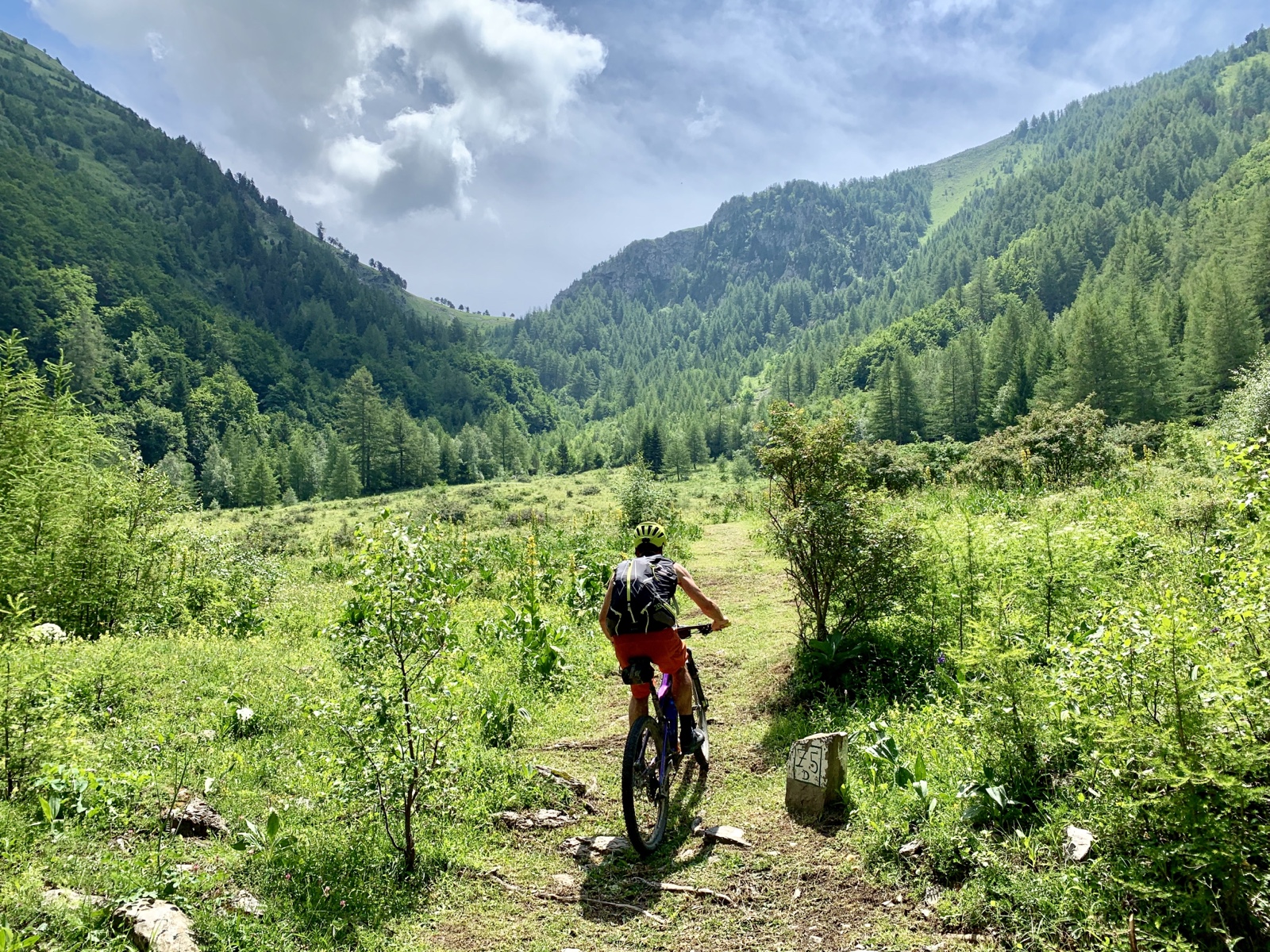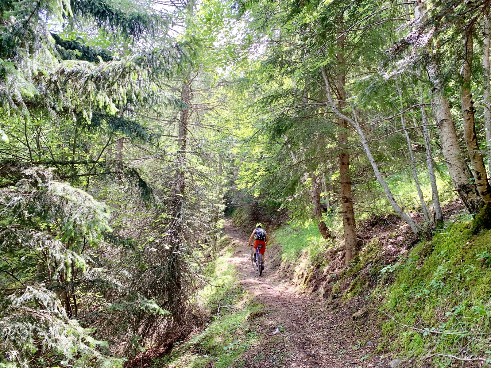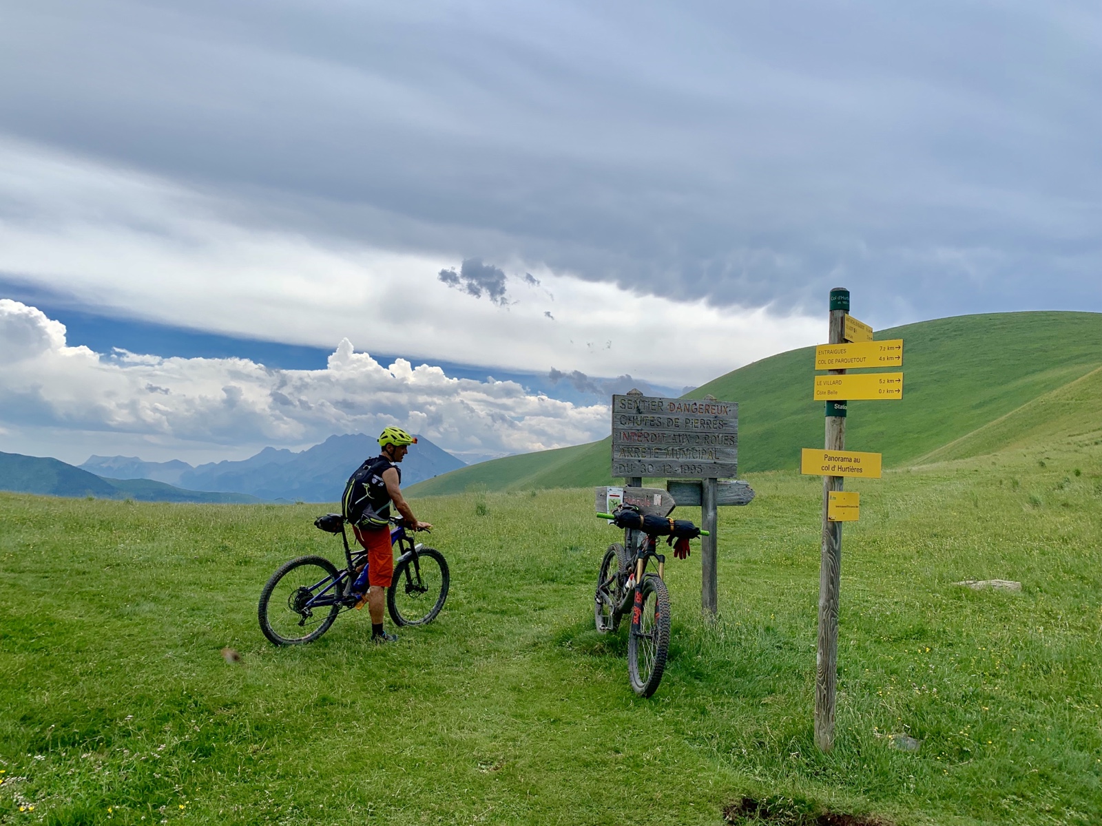 Dermaßen gestärkt ließen wir uns auch von Regentropfen und schwarzen Gewitterwolken nicht aus dem Konzept bringen und starteten unsere Mission zum Col d‘ Ornon. Auf einem gut fahrbaren Trail kamen wir zügig vorwärts.