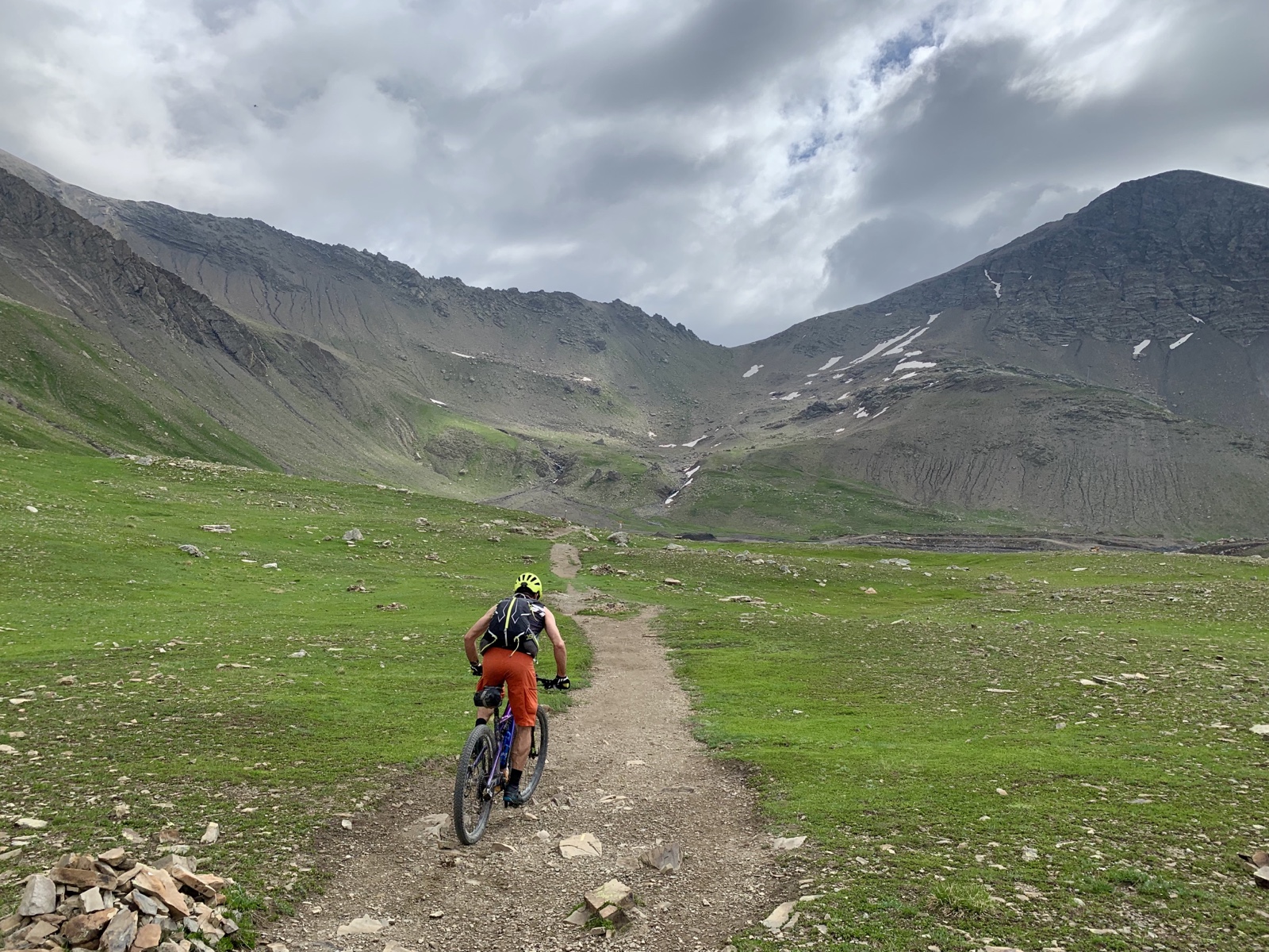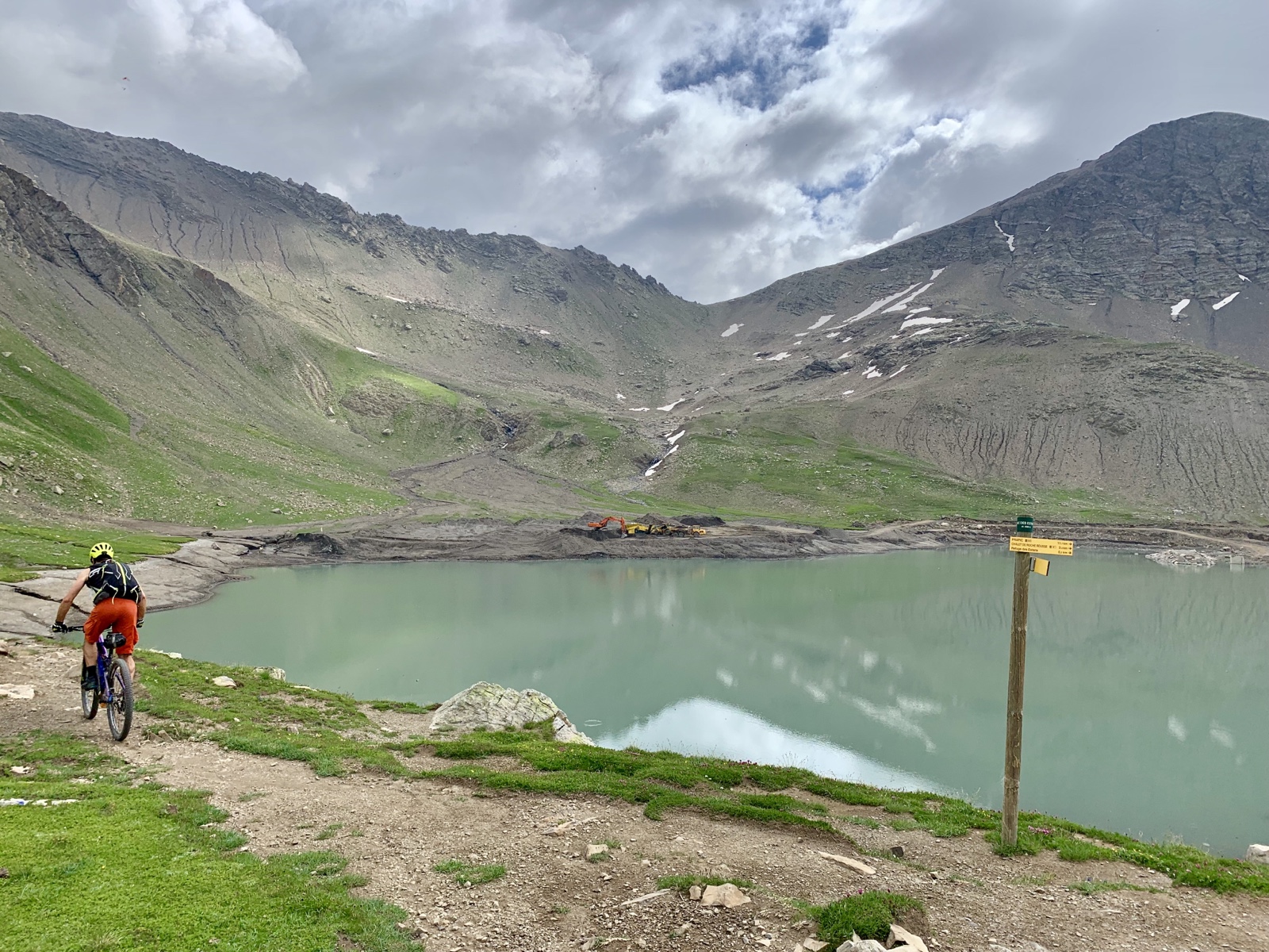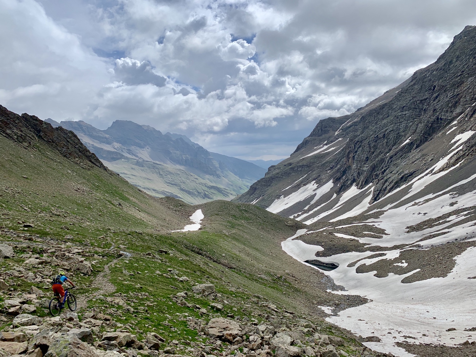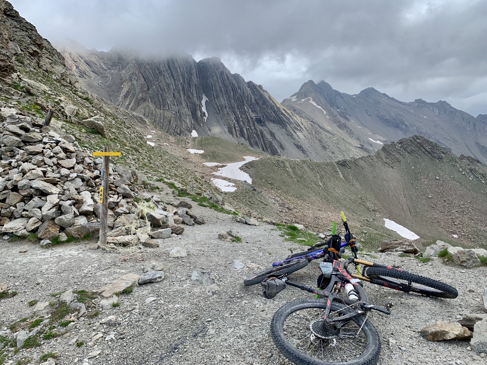 Vorerst ging’s weiter zum Col de Freissinière. Umgeben von schwarzen Wolken, doch wir blieben – warum auch immer – stets trocken. Mal schöner Trail, dann wieder ein kurzes Schiebestück, ab und zu sogar bergab. Fortan sollten unsere Bremsen zwei Stunden lang nicht mehr abkühlen!
