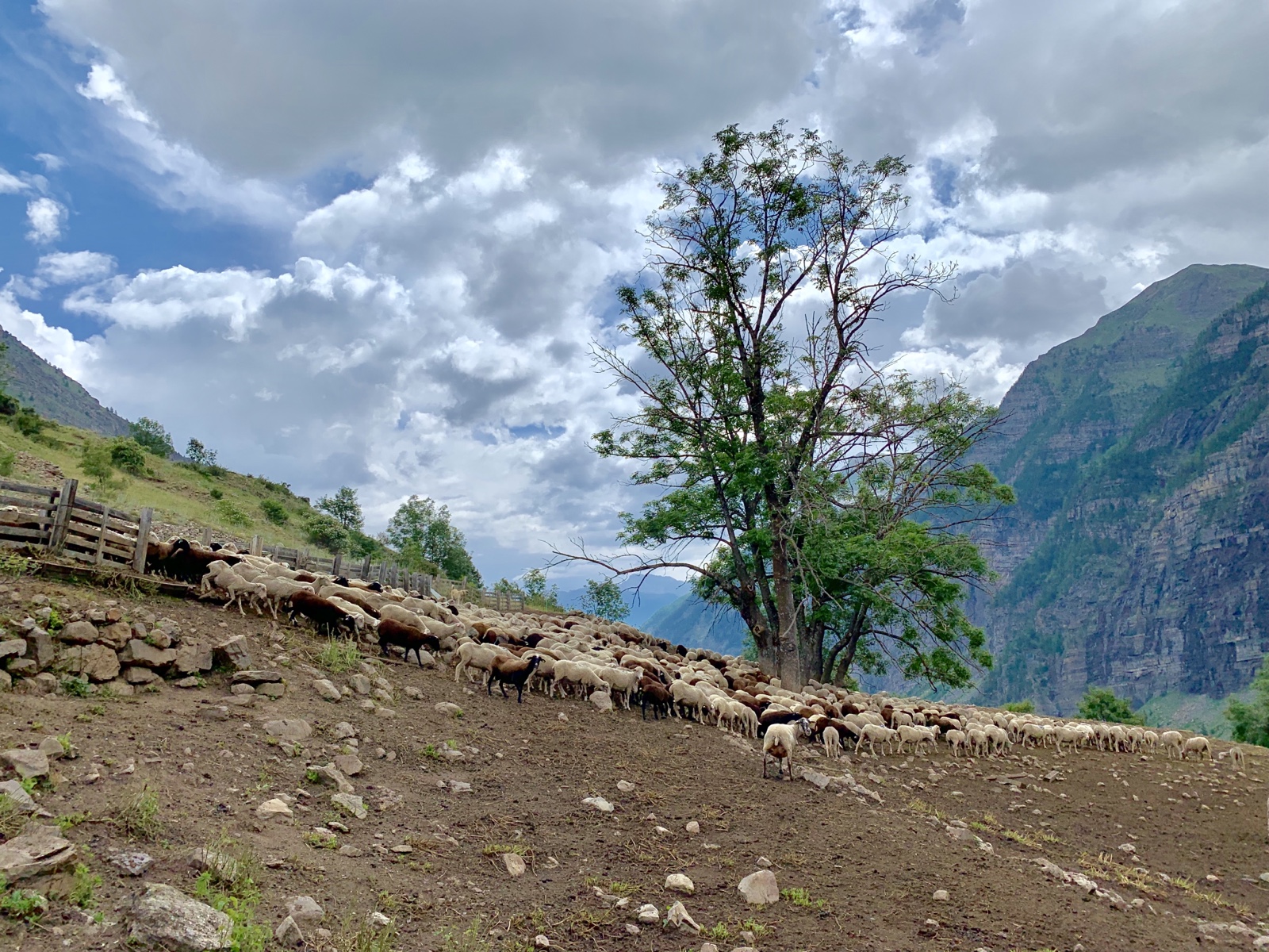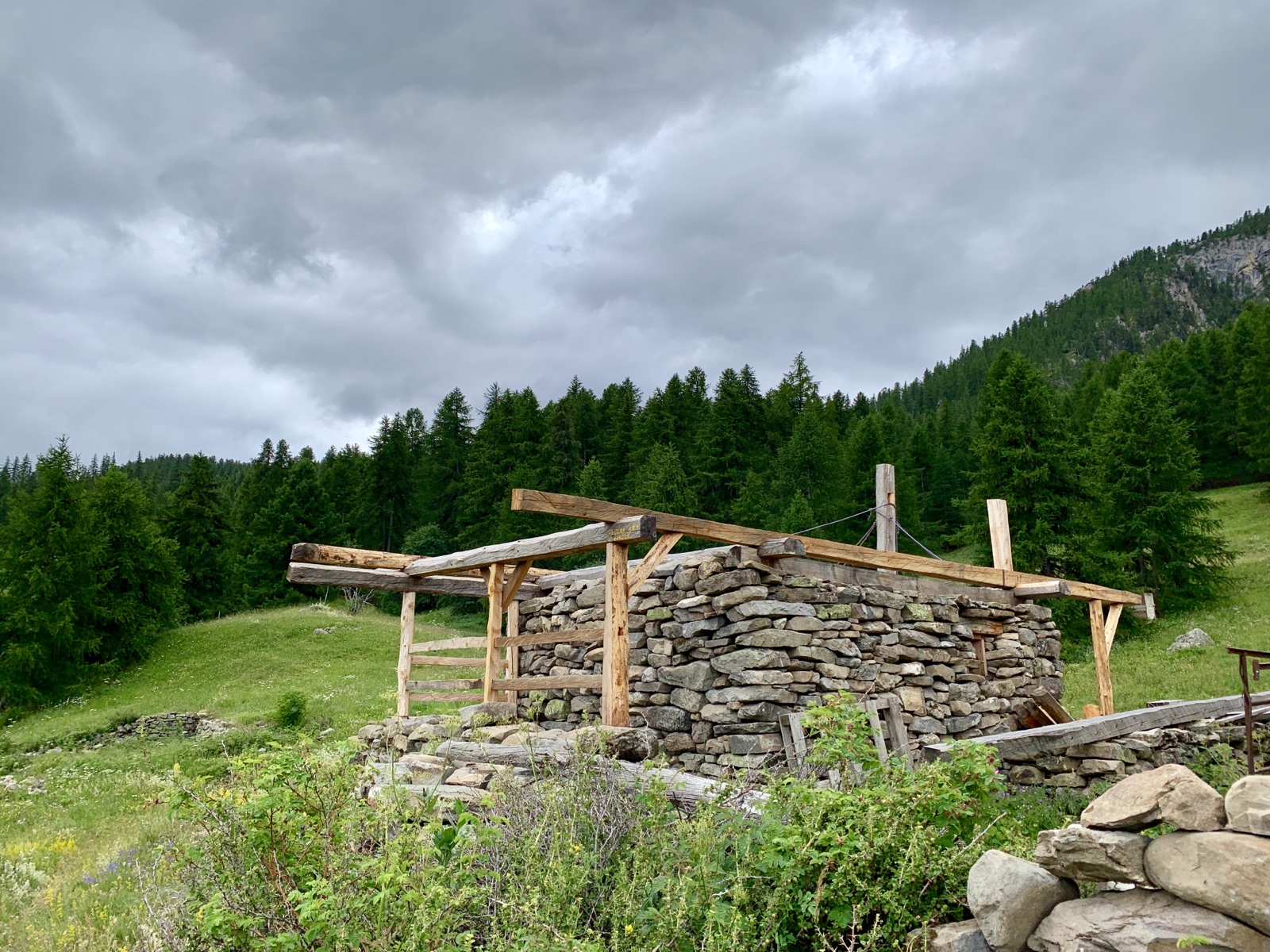 Kaum waren wir im Talboden angelangt, begann es zu regnen. Aber wie heute nicht anders zu erwarten, war das nächste Restaurant nicht weit entfernt. Und auch die vorerst grimmige Miene der Wirtin hellte sich zunehmend auf. Bei der Anzahl verschiedener Speisen gäb’s noch etwas Luft nach oben, aber das heutige Tagesmenu (Rührei nature) schmeckte uns. Vor allem aber schien wieder die Sonne, als wir die Auberge verließen und den nächsten Aufstieg in Angriff nahmen. Auch da stets gejagt von schwarzen Regenwolken, die sich aber glücklicherweise nie über uns leerten.