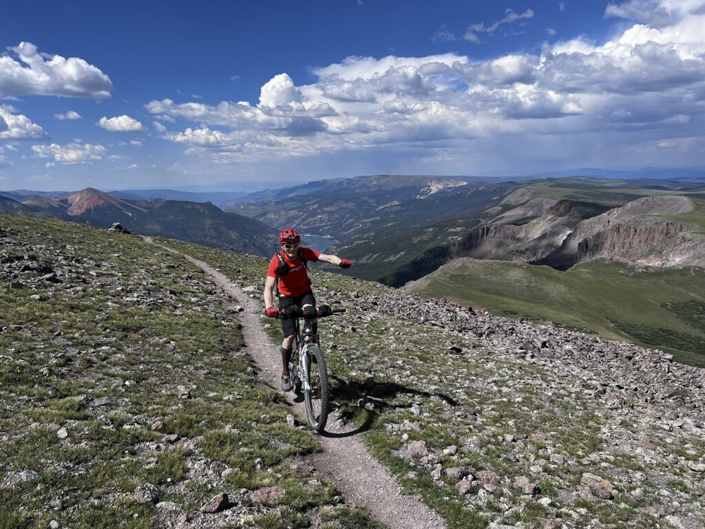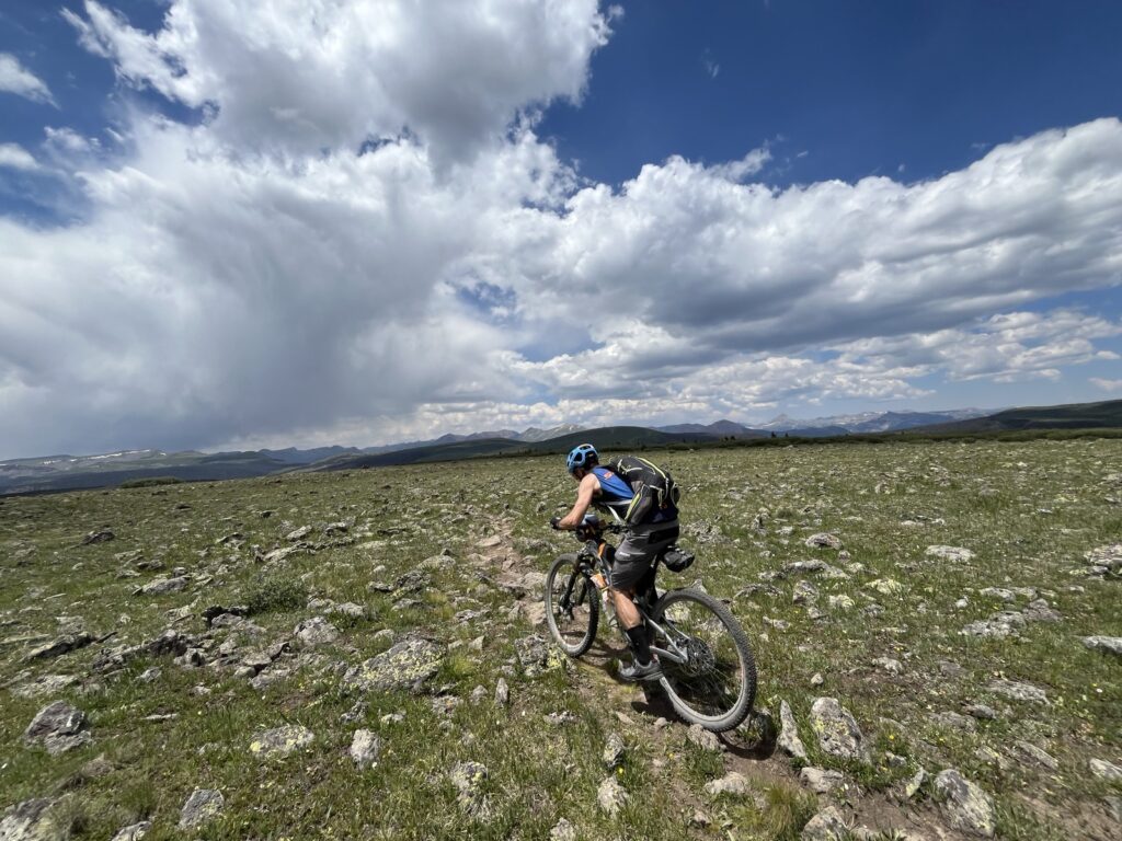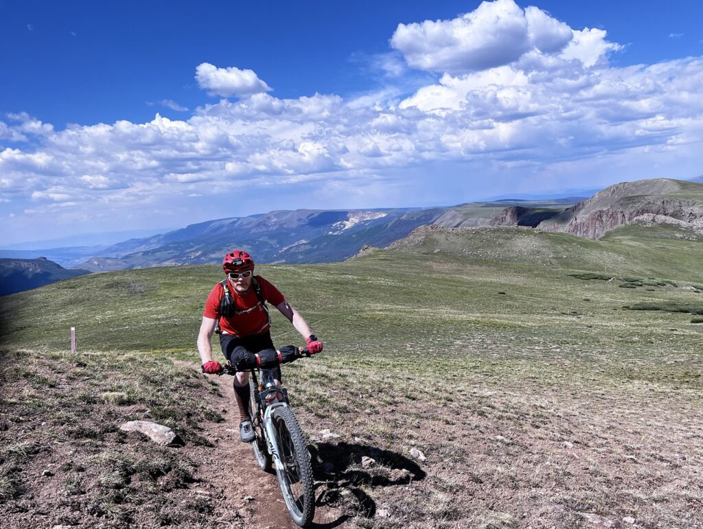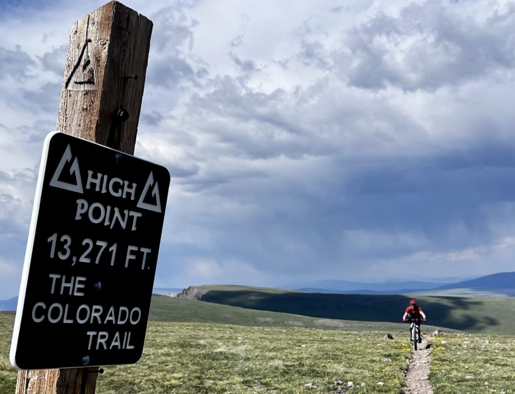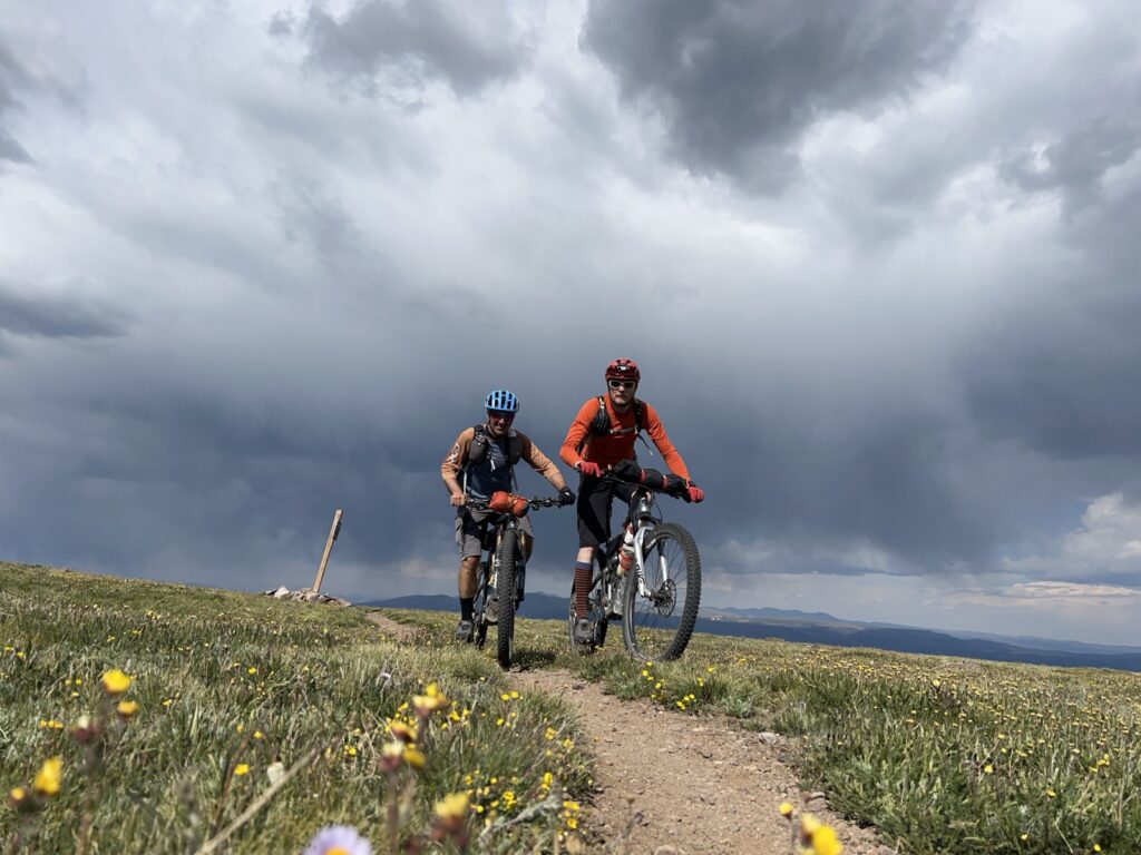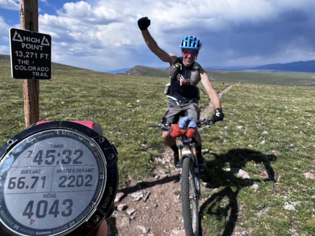 Von Adrenalin und Glückshormonen getrieben flogen wir mit unseren vollgefederten Carbonpferden über die sanften Hügel. Um schliesslich um halb fünf am mit 4046 müM höchsten Punkt des Coloradotrails anzukommen. Wir jauchzten und umarmten uns! Etwas vom eindrücklichsten, was wir je auf zwei Rädern erleben durften! Und wir biken beide doch immerhin seit 35 Jahren…