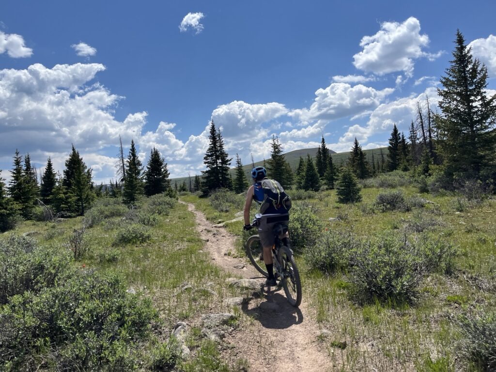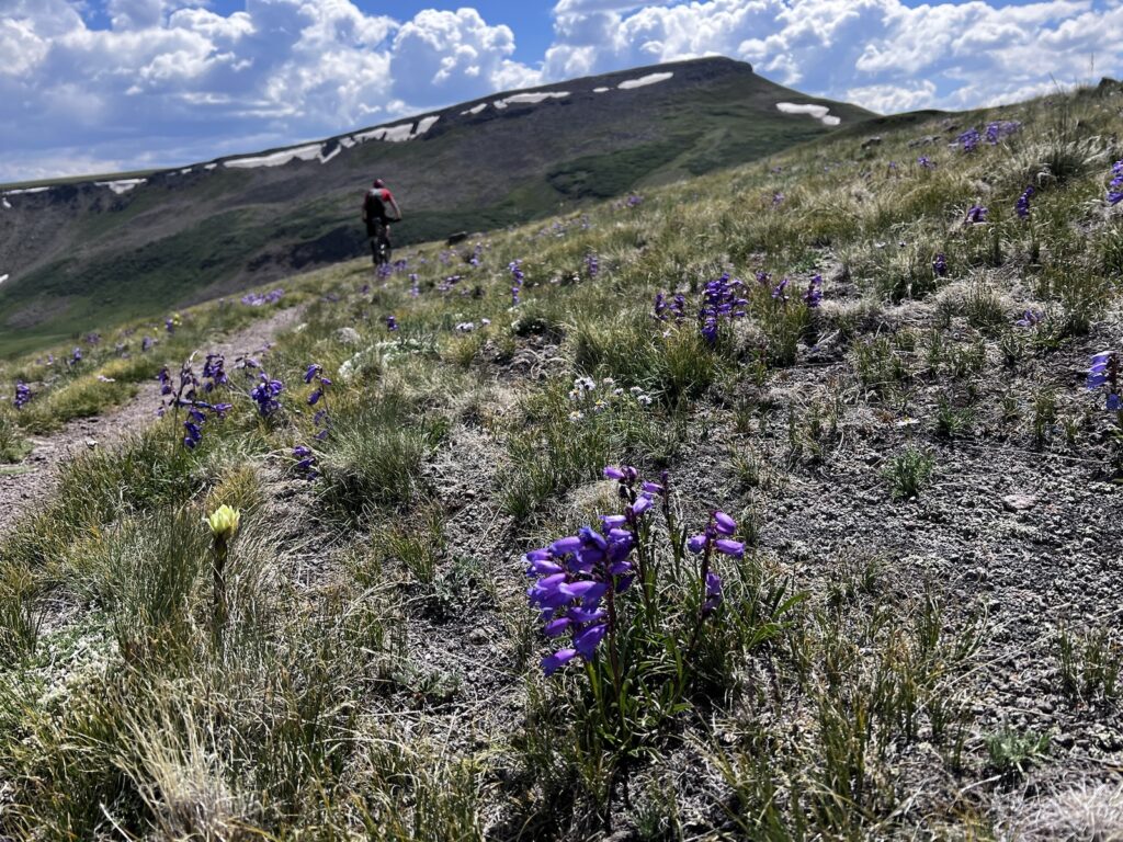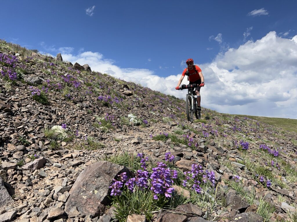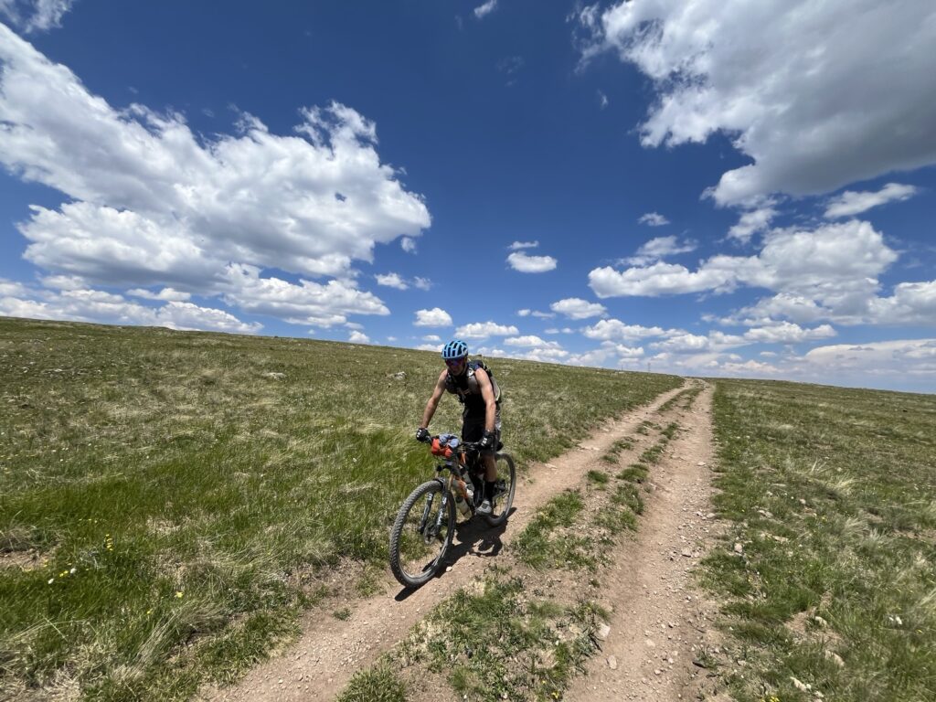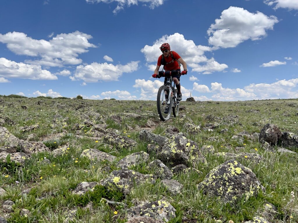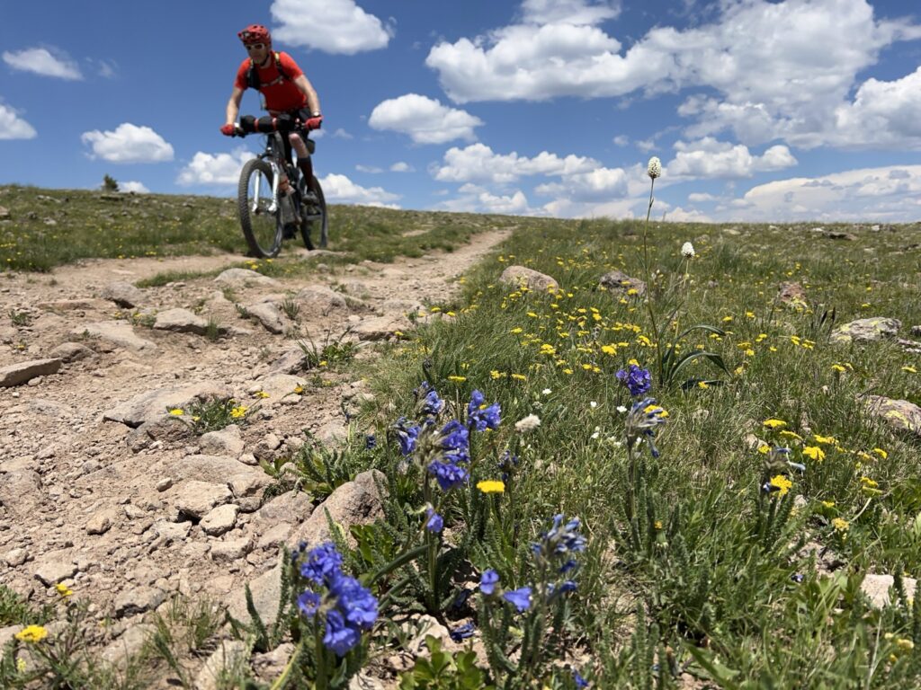 Von Adrenalin und Glückshormonen getrieben flogen wir mit unseren vollgefederten Carbonpferden über die sanften Hügel. Um schliesslich um halb fünf am mit 4046 müM höchsten Punkt des Coloradotrails anzukommen. Wir jauchzten und umarmten uns! Etwas vom eindrücklichsten, was wir je auf zwei Rädern erleben durften! Und wir biken beide doch immerhin seit 35 Jahren…
