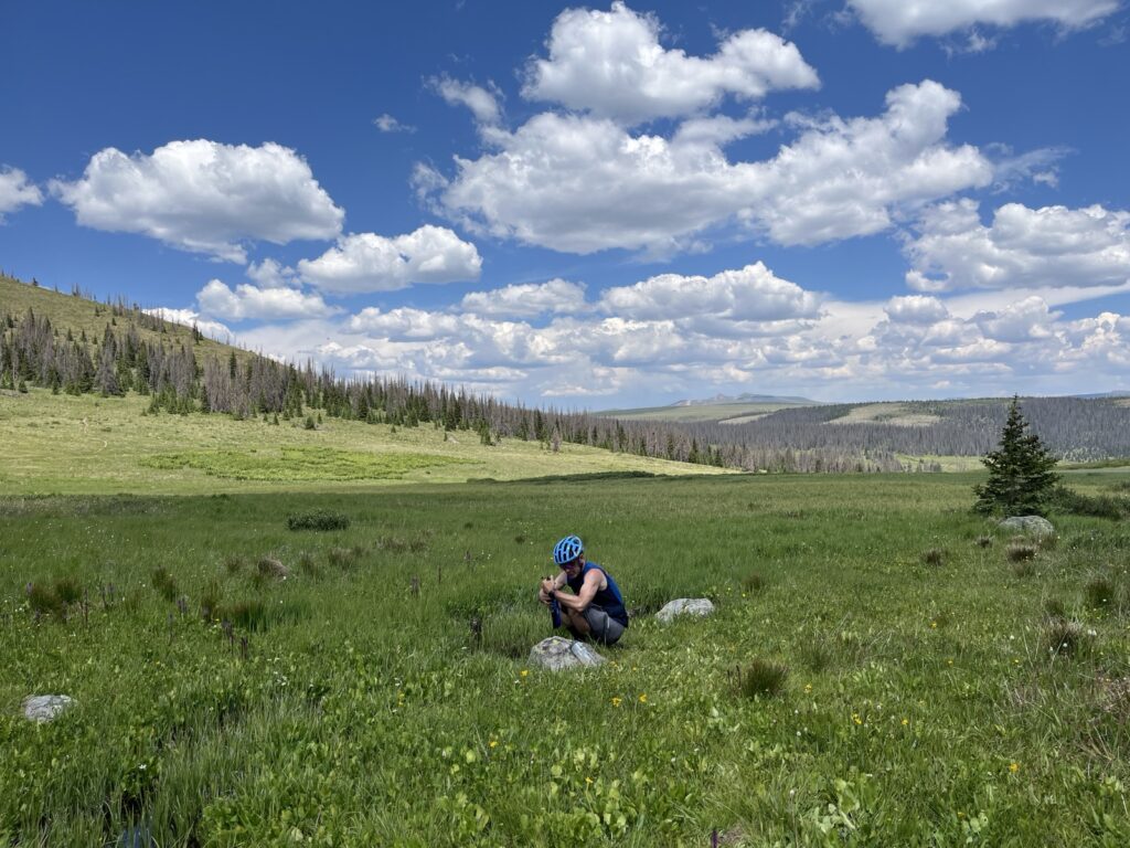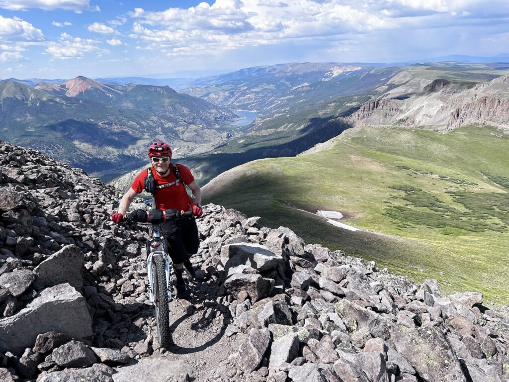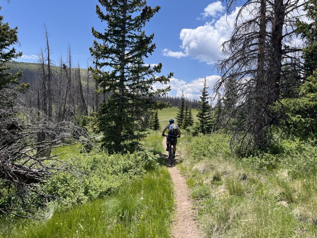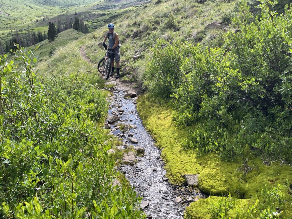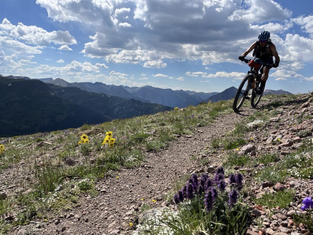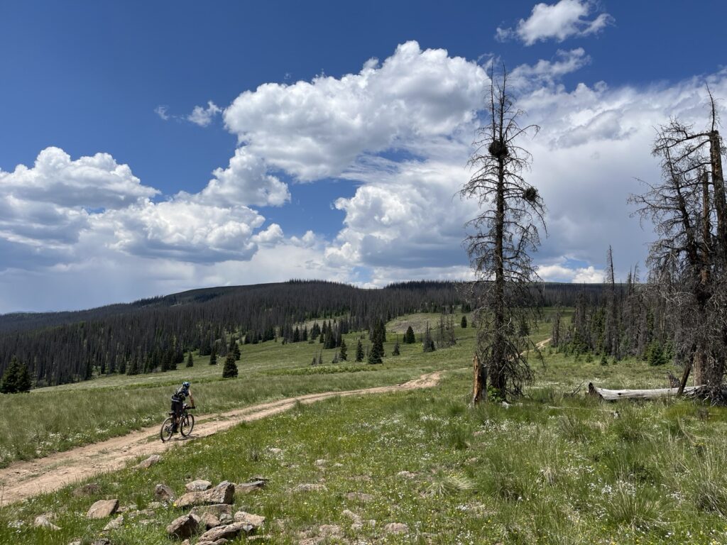Von Adrenalin und Glückshormonen getrieben flogen wir mit unseren vollgefederten Carbonpferden über die sanften Hügel. Um schliesslich um halb fünf am mit 4046 müM höchsten Punkt des Coloradotrails anzukommen. Wir jauchzten und umarmten uns! Etwas vom eindrücklichsten, was wir je auf zwei Rädern erleben durften! Und wir biken beide doch immerhin seit 35 Jahren…