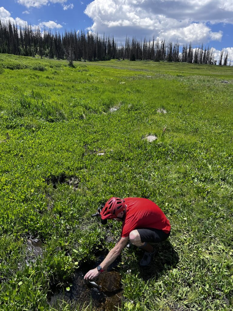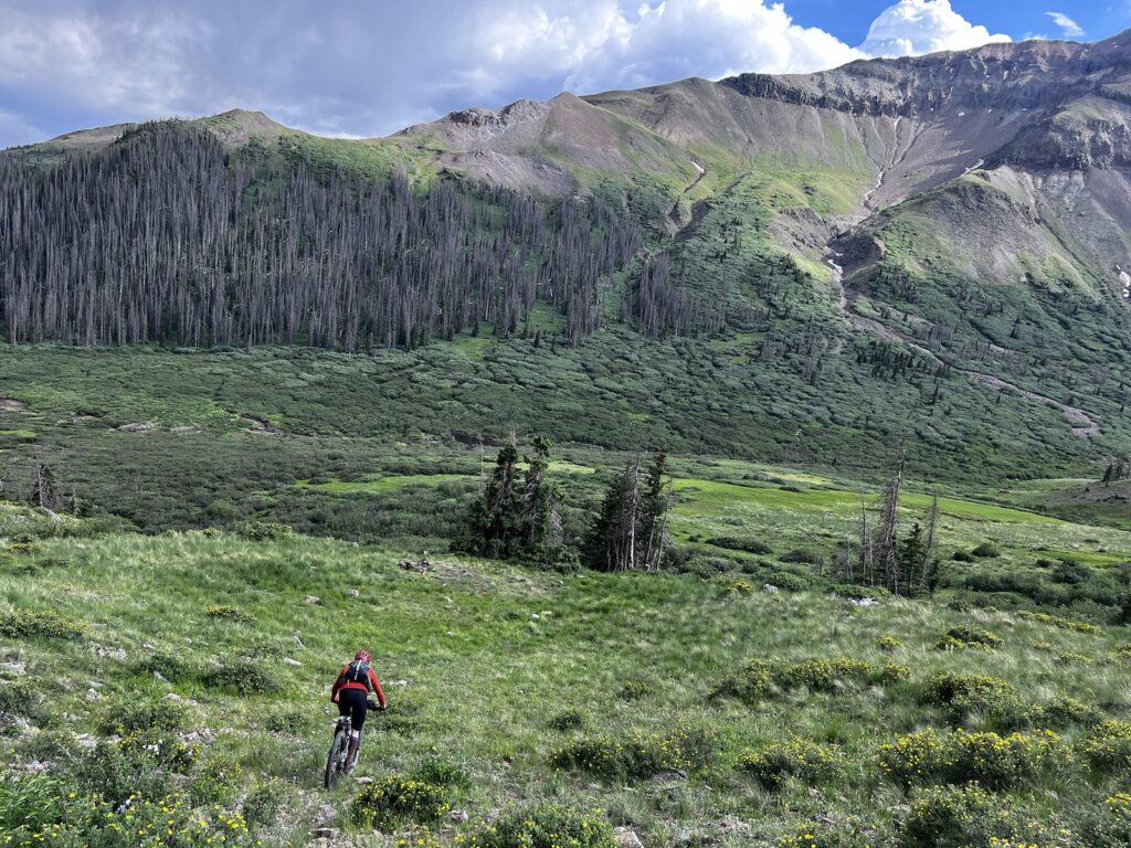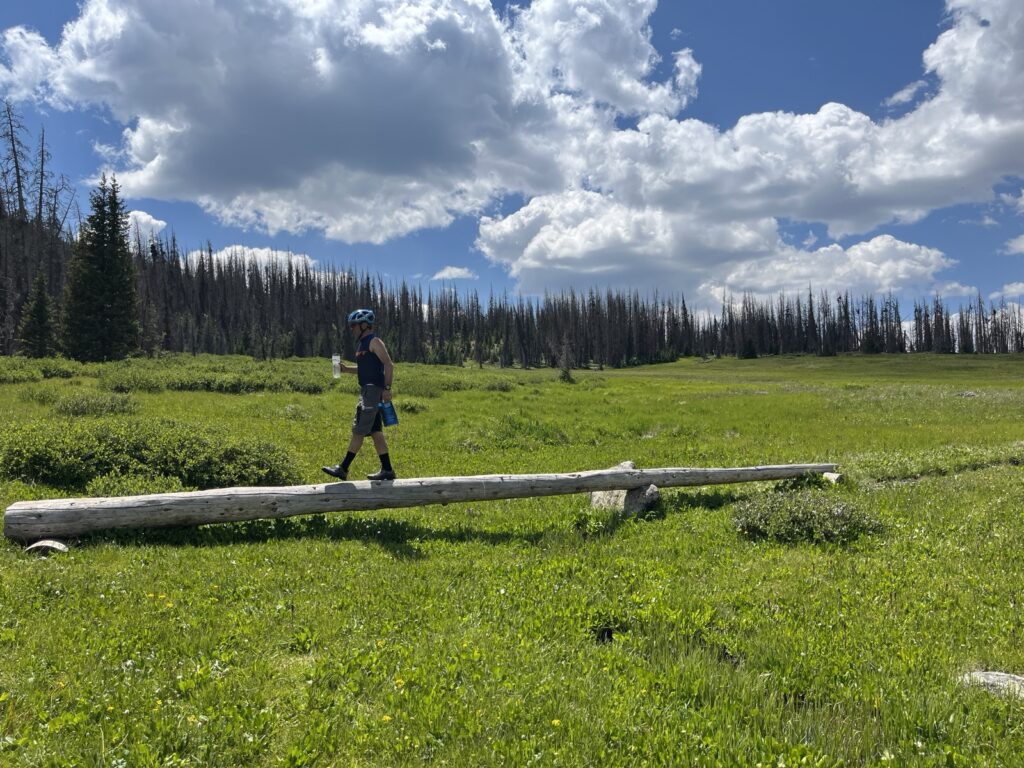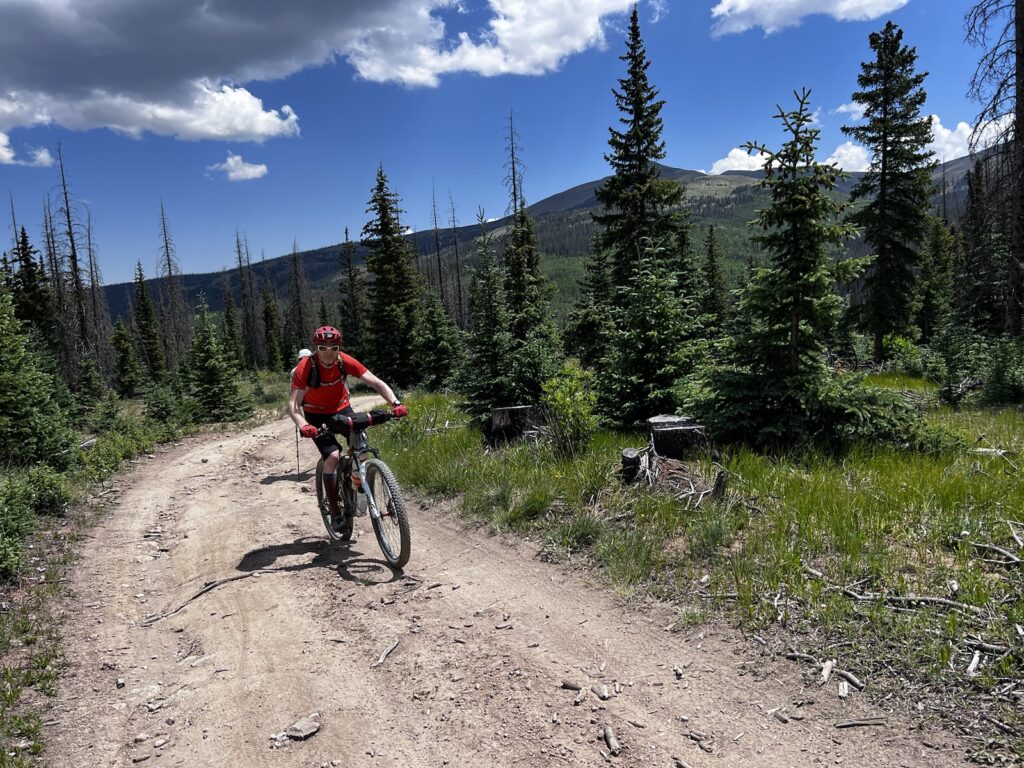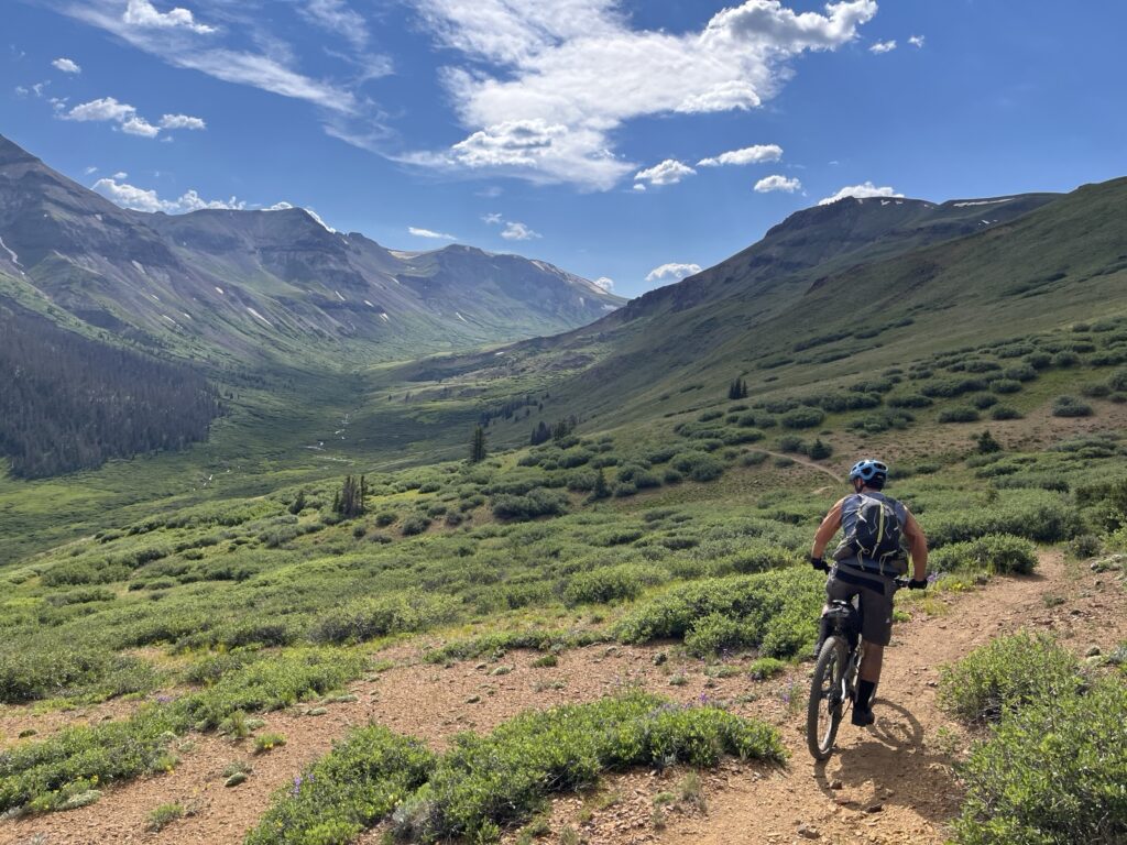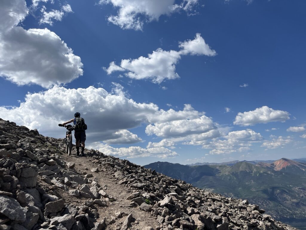 Von Adrenalin und Glückshormonen getrieben flogen wir mit unseren vollgefederten Carbonpferden über die sanften Hügel. Um schliesslich um halb fünf am mit 4046 müM höchsten Punkt des Coloradotrails anzukommen. Wir jauchzten und umarmten uns! Etwas vom eindrücklichsten, was wir je auf zwei Rädern erleben durften! Und wir biken beide doch immerhin seit 35 Jahren…