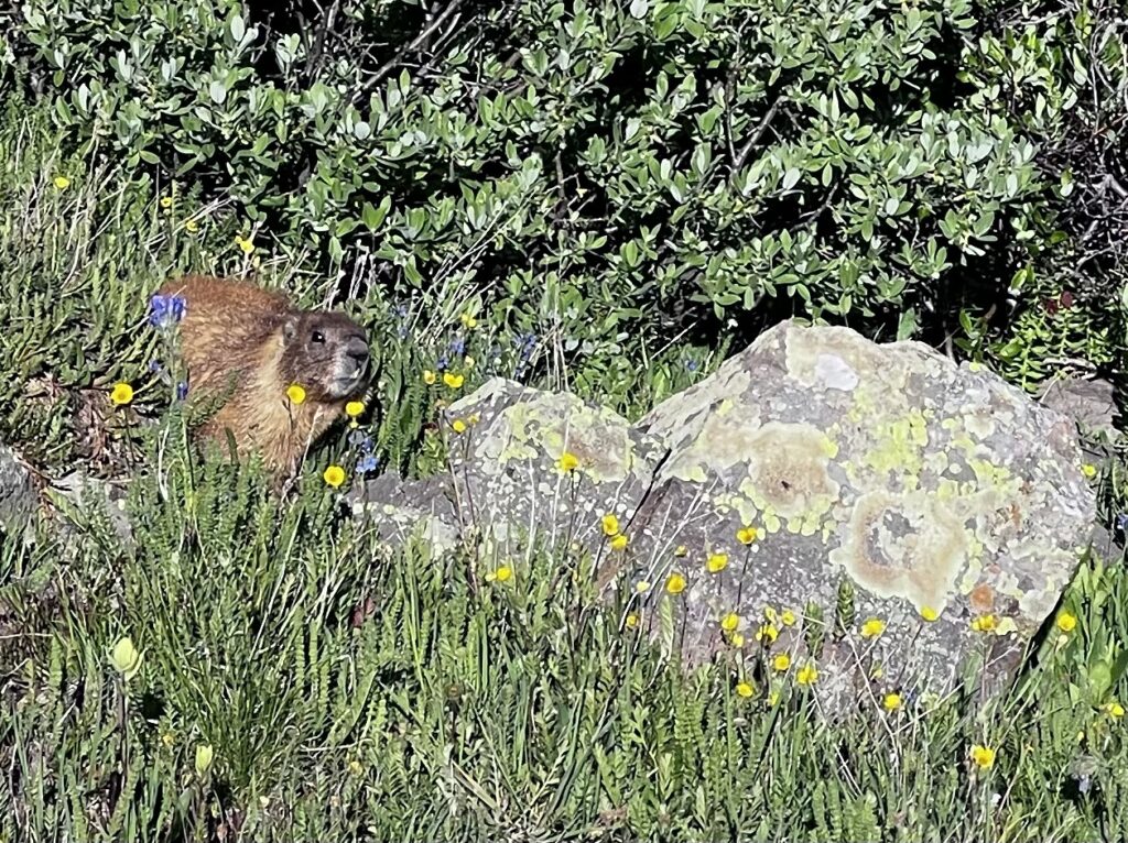Das Wetter war nach wie vor prächtig, und es dauerte geschlagene drei Stunden, bis wir den ersten Menschen trafen. Tiere hingegen hatten wir so viele wie noch nie zu Gesicht bekommen. Nebst einem Adler und einigen Hirschen natürlich vor allem Erdhörnchen und Murmeltiere, die auch in diesem Teil Colorados zu unserem Erstaunen stumm sind.