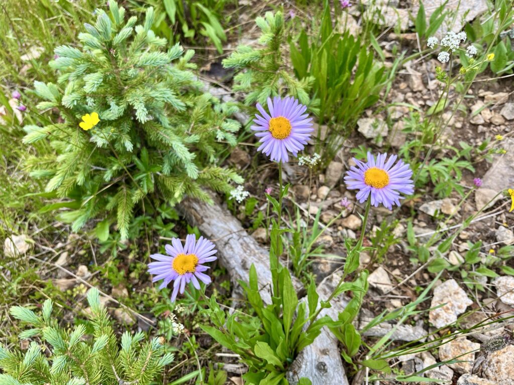 Dafür gibt’s natürlich Gründe: Zum einen sicher, weil es Samstag ist, zum anderen aber auch, weil der Trail wirklich unglaublich gut und schön war! Flowig, unterhaltsam, aussichtsreich. War das eine Wohltat nach den harten letzten Tagen! Keine Brutalo-Uphills, kein Geholper, keine Ganzkörper-Laktat-Duschen. Definitiv ein Million-Dollar-Trail!Und eine komplett veränderte Landschaft. Jetzt dominierte sattes Grün, dazu Blumen in allen Farben. Und nicht selten mussten wir uns den Weg durch die Büsche oder mannshohe Blumen richtiggehend freikämpfen.