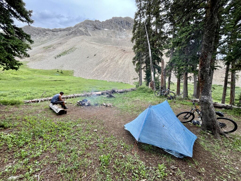 Der Trail verlor zum Glück schon schnell seine Grimmigkeit und wurde wieder flüssig. Um uns nach gut sechs Stunden und einer Million Mal Grinsen an einem erneut umwerfend schönen Zeltplatz auszuspucken.