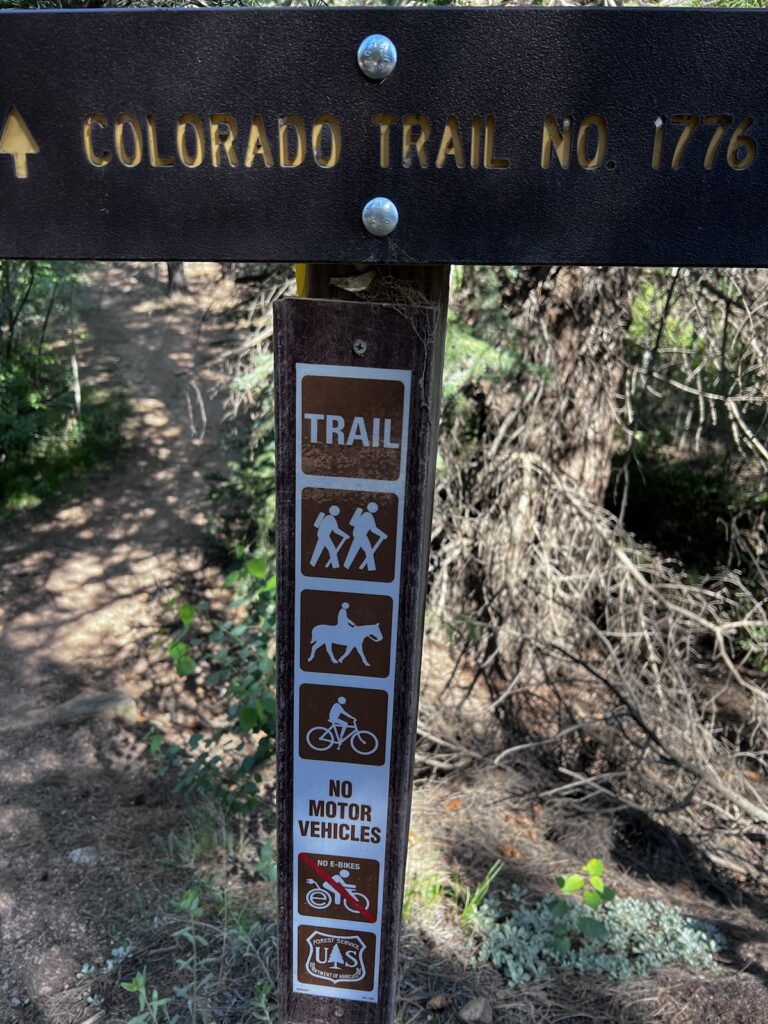Die große Höhe und das ständige Auf und Ab sind wir nicht gewohnt, und schon auf den ersten Metern waren die Beine “sauer” und die Lunge am Limit. Obwohl es natürlich äußerst spassig zu fahren ist. Wandern – und das tun die meisten, denen wir begegnen- würden wir den Coloradotrail für kein Geld der Welt.