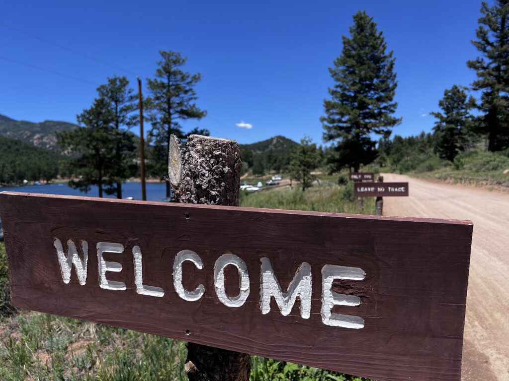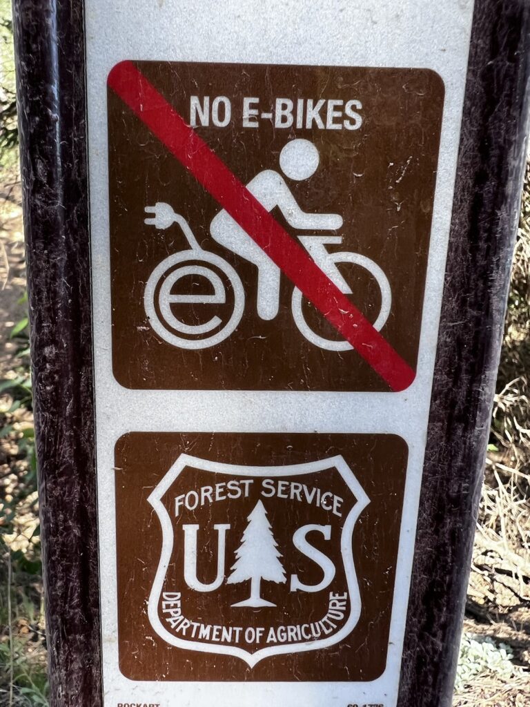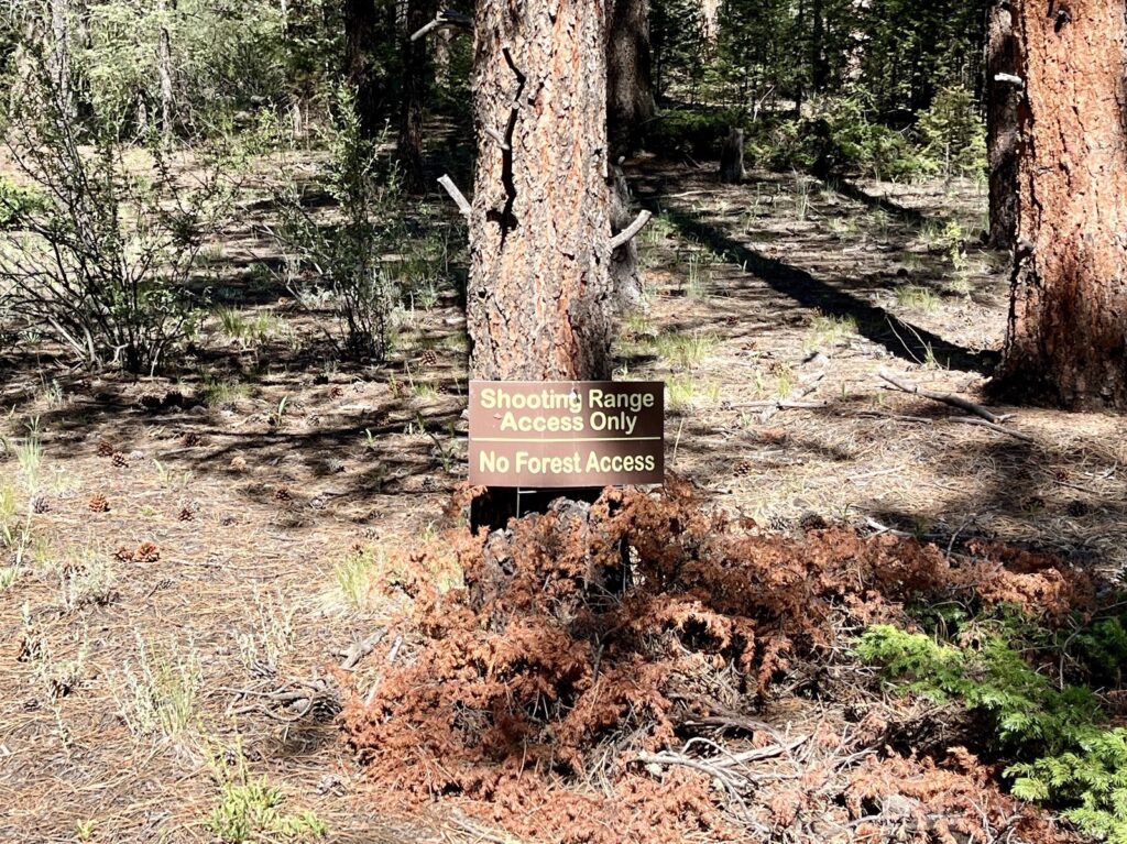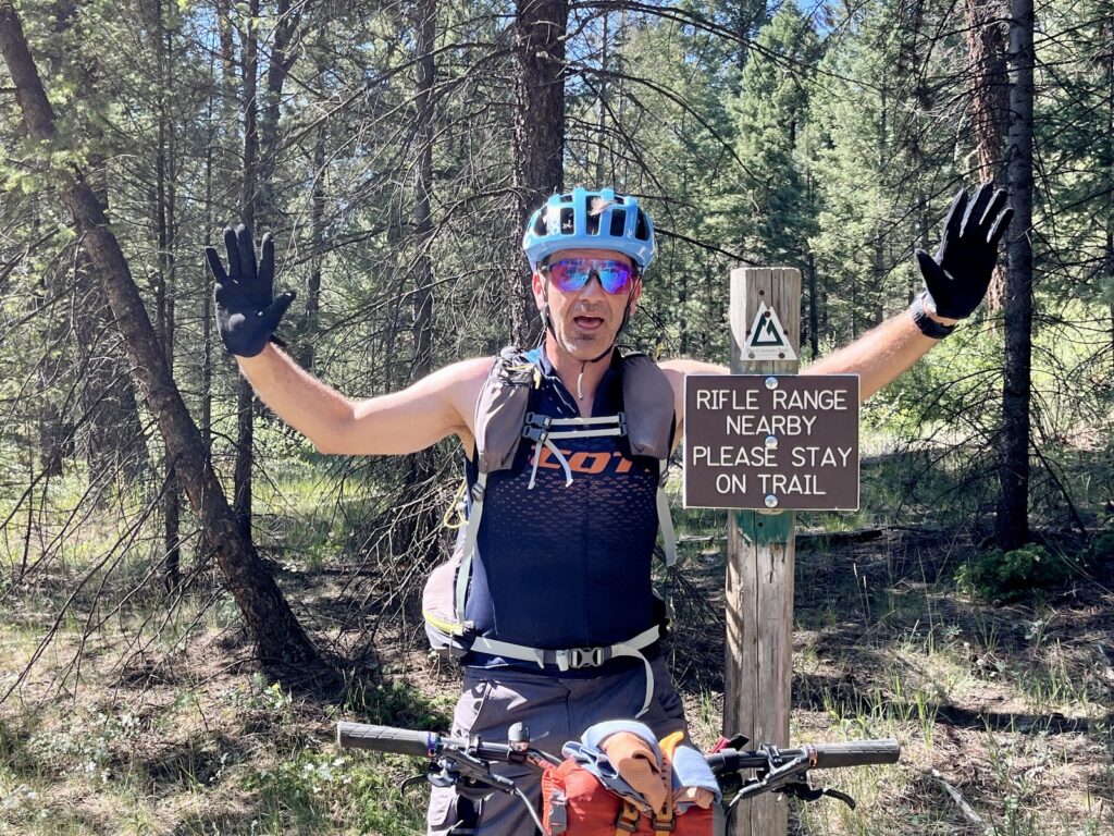 Mat hatte nämlich auf der Suche nach Handy-Empfang für unseren Blog noch eine ganz ordentliche Zusatschlaufe absolviert. Gut, entdeckten wir das Schild mit dem Hinweis, dass man wegen der nahen “Rifle-Ranch” den Trail nicht verlassen dürfe, erst heute Morgen…