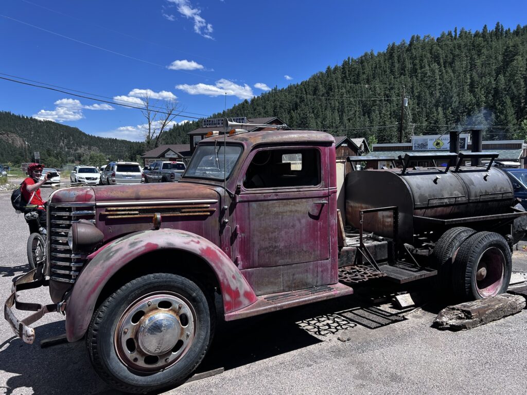 Besagter Trail war heute eigentlich zu Ende, da eine Wilderness-Area folgte, in welcher Biken leider verboten ist. Das wussten wir zum Glück, und Mat hatte in weiser Voraussicht eine Unterkunft in Bailey gebucht. Die Fahrt dahin – “all downhill”, hatte man uns versichert, entpuppte sich als üble Wellblech-Schotterpiste. Die zwar schon häufig bergab führte, jedoch wegen der Bremsrillen ziemlich mühsam und anstrengend war.