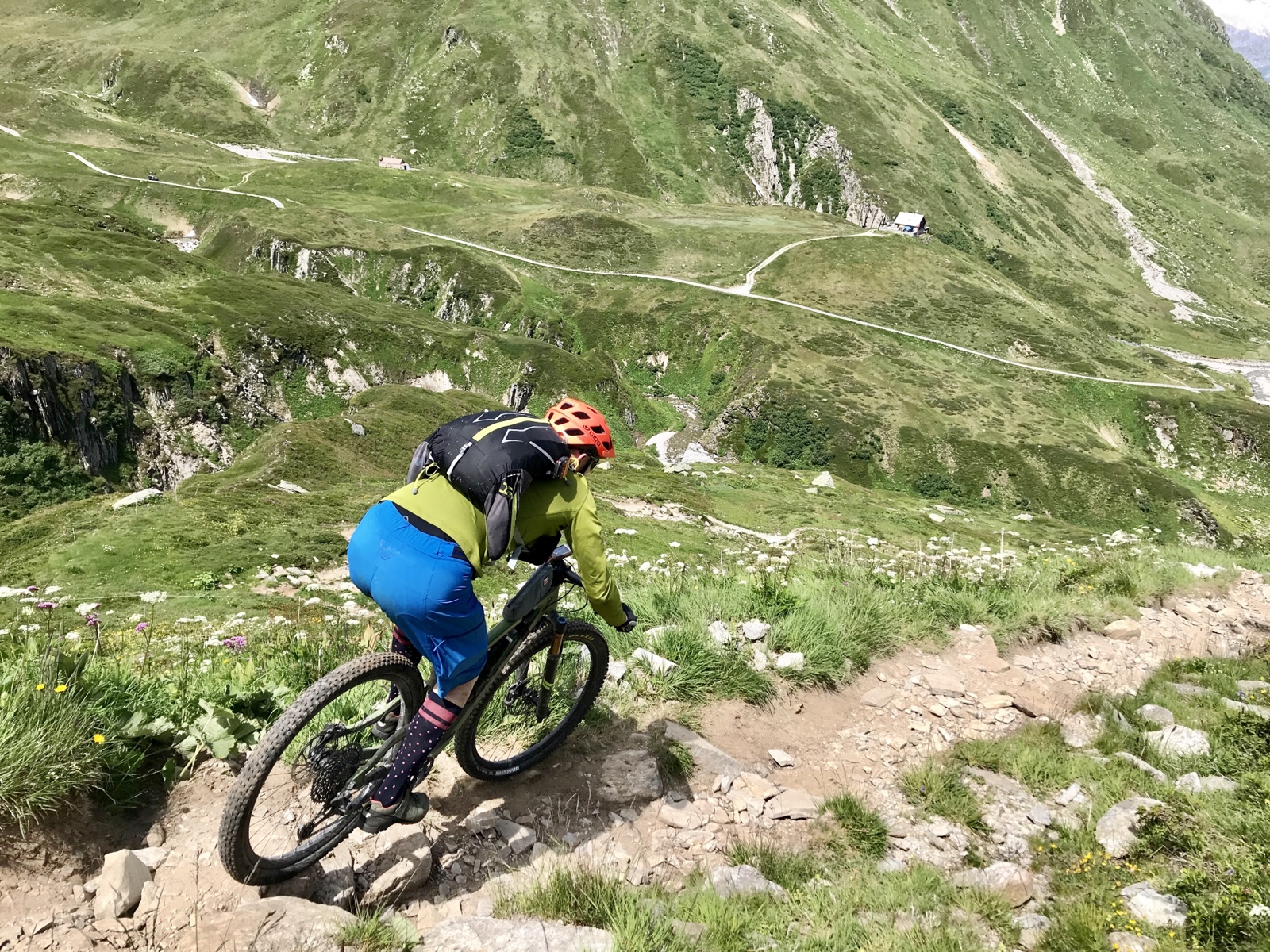 Die Abfahrt nach Andermatt hatten wir noch deutlich steiniger und schwieriger in Erinnerung. Freunde gut gepflegter Flowtrails werden sie zwar nach wie vor verfluchen – wir hingegen hatten großen Spaß dran. Zumal die Umgebung großartig und das Wetter kaiserlich war.