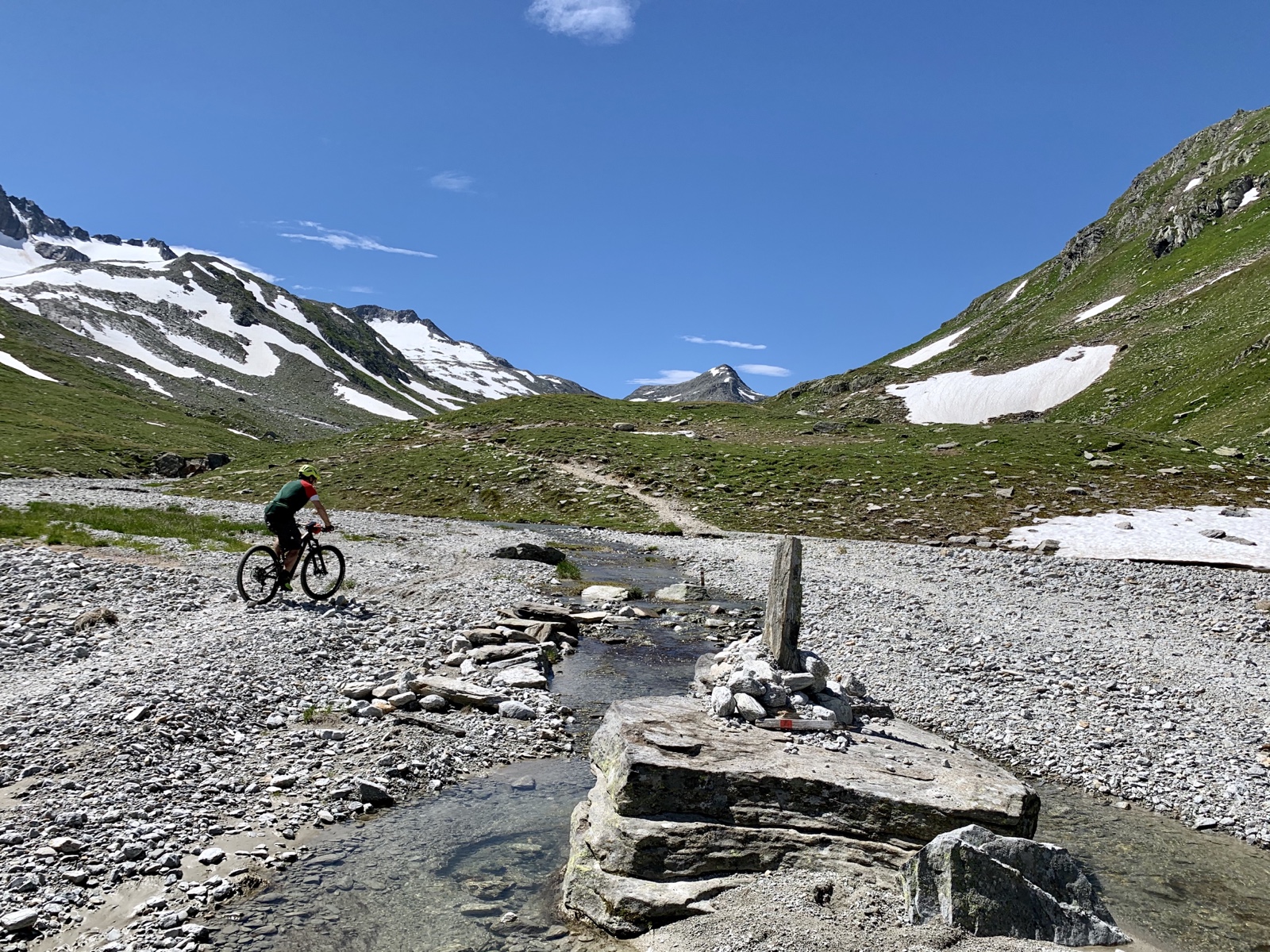 Die zahlreichen Altschneefelder hatten die Bäche anschwellen lassen, so dass wir ein paar abenteuerliche Bachdurchquerungen zu meistern hatten.