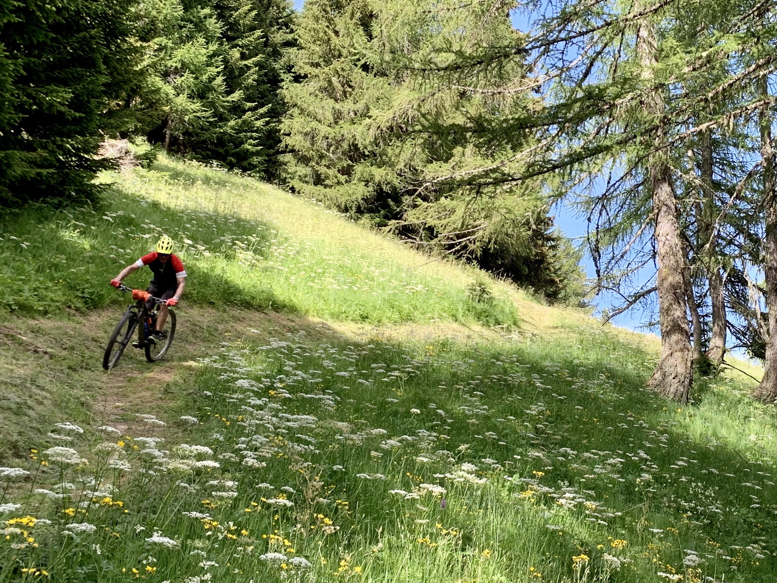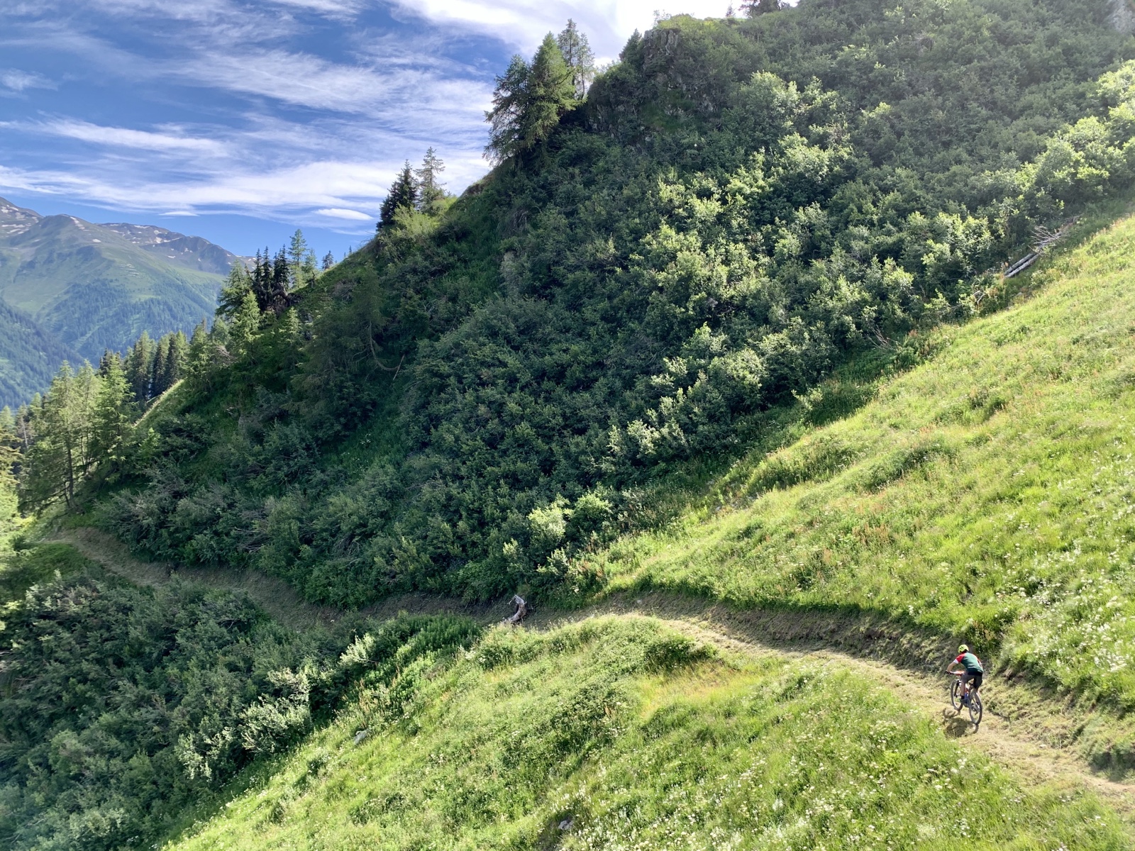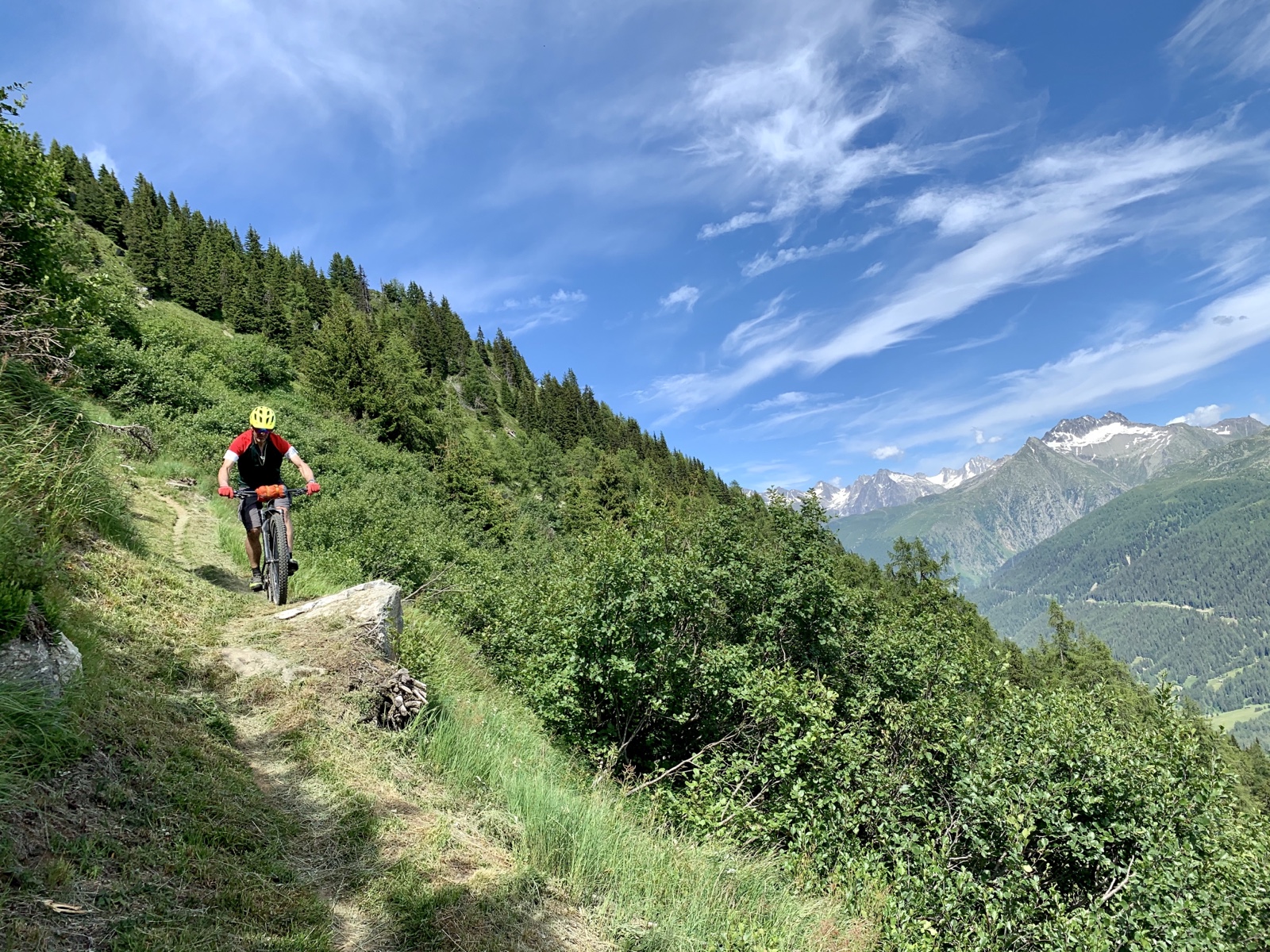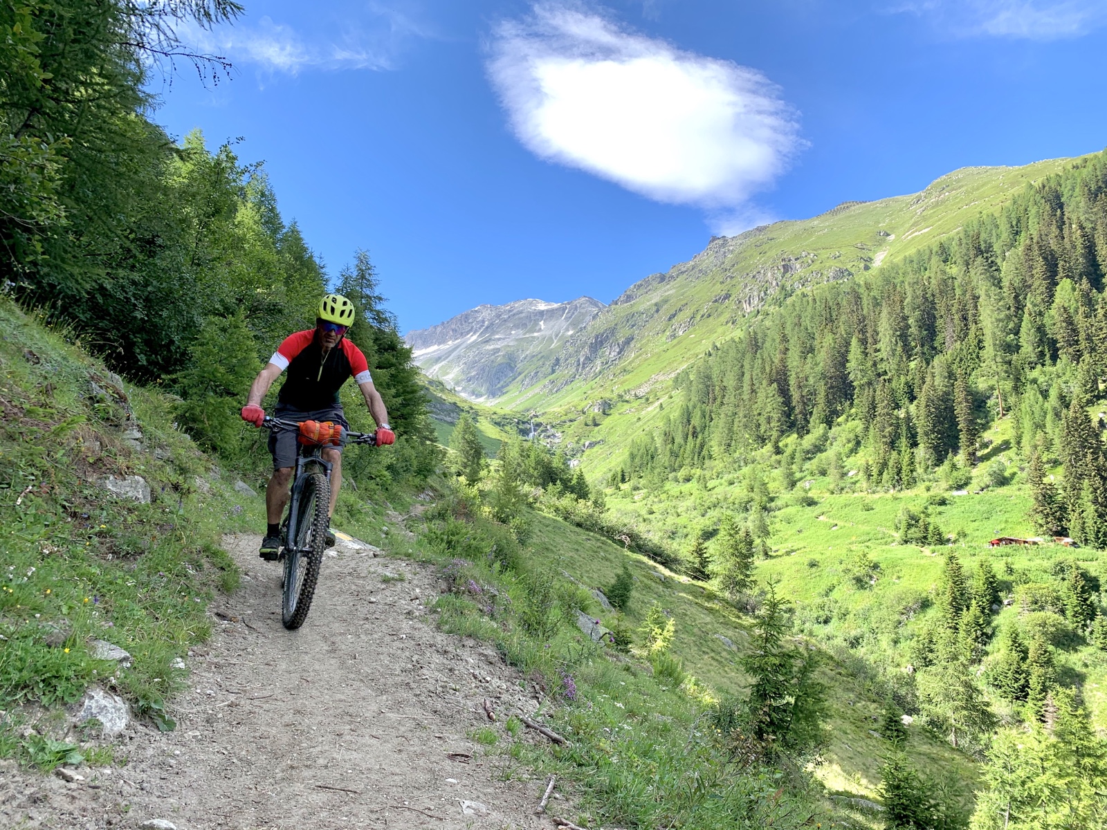 Die Abfahrt auf dem Gommer Höhenweg- infolge Danis gebrochener Felge mit etwas weniger gewagten Fahrmanövern – gestaltete sich anfänglich etwas mühsam, wurde jedoch immer spaßiger und zauberte schließlich uns beiden ein breites Grinsen ins Gesicht.