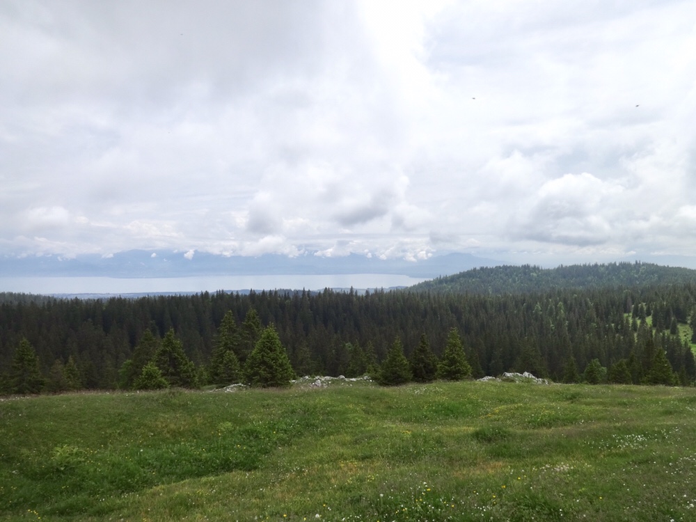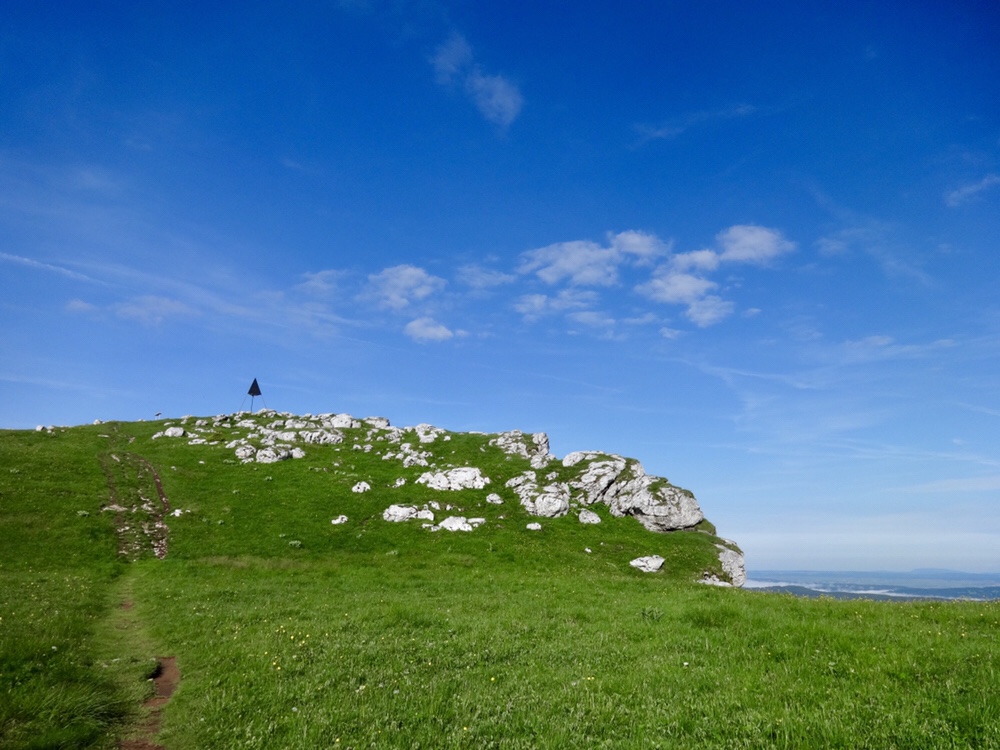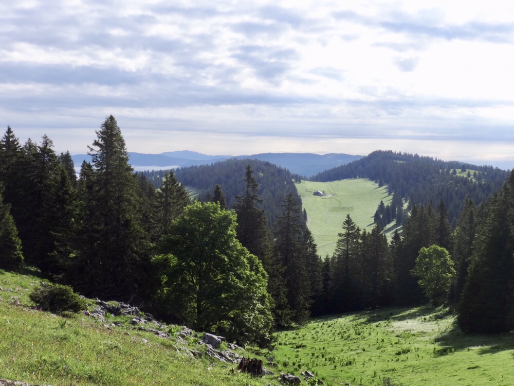 Immer noch ging es, teilweise schiebend, den Berg hoch, bis ich endlich den Mont Tendre zu Gesicht bekam.
