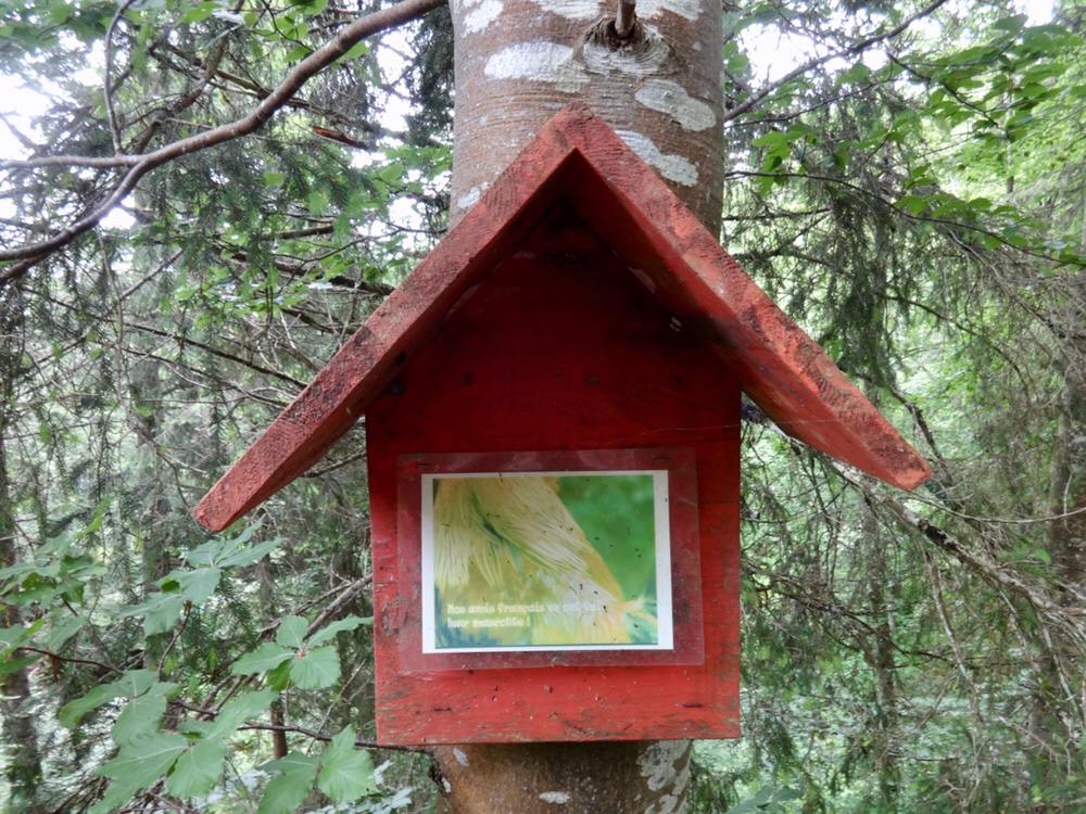 Der Wecker um sechs Uhr morgens erlöste mich aus einem unruhigen Schlaf. Immerhin hatte sich das Mördergewitter, welches die halbe Nacht an meinem Stall rüttelte, aufgelöst. Trotzdem schwante mir übles, wenn ich an die vielen Wiesen dachte, welche es wohl auch heute zu queren galt. Kurz vor sieben hatte ich meine sieben Sachen gepackt und es konnte losgehen, mitten durch das hohe Gras. Von Weitem waren jeweils die gelben Wegweiser als Anhaltspunkt zu sehen.