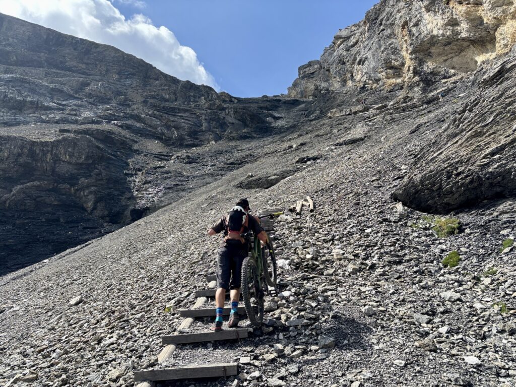 Im Berghaus Bundalp füllten wir unsere nachlassenden Energiespeicher mit Kafe und Gebäck auf, bevor es ab Bundläger endgültig zur Sache ging. Ab da wollten die Bikes nämlich geschoben und getragen werden und das nicht zu knapp!